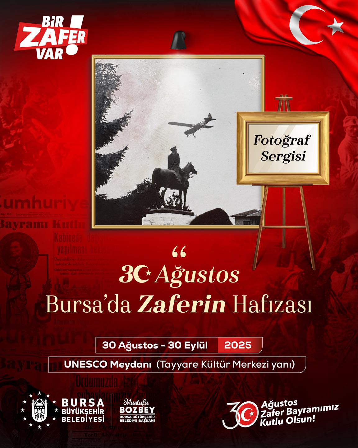 Tam 103 yıl önce Başkomutanımız Gazi Mustafa Kemal Atatürk’ün liderliğinde, kahraman ordumuz ve milletimizin inancıyla yazılan eşsiz destanı; bağımsızlık mücadelemizin ve özgürlüğümüzün simgesi, Cumhuriyetimizin kuruluşuna giden yolun mihenk taşı olan 30 Ağustos Zafer Bayramı, Büyükşehir Belediyesi koordinasyonunda hazırlanan programlarla, Bursa’da büyük bir coşkuyla kutlanacak.