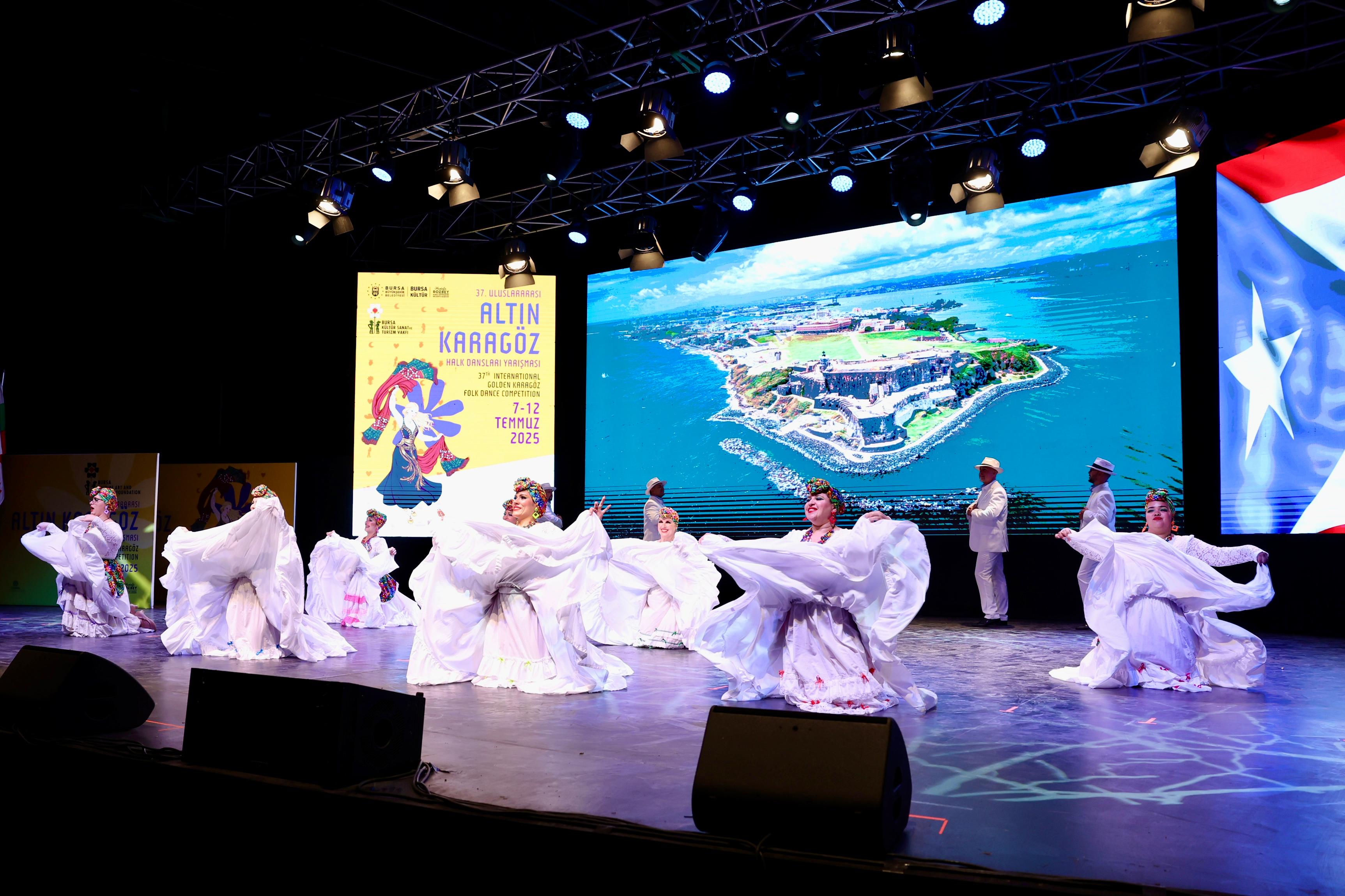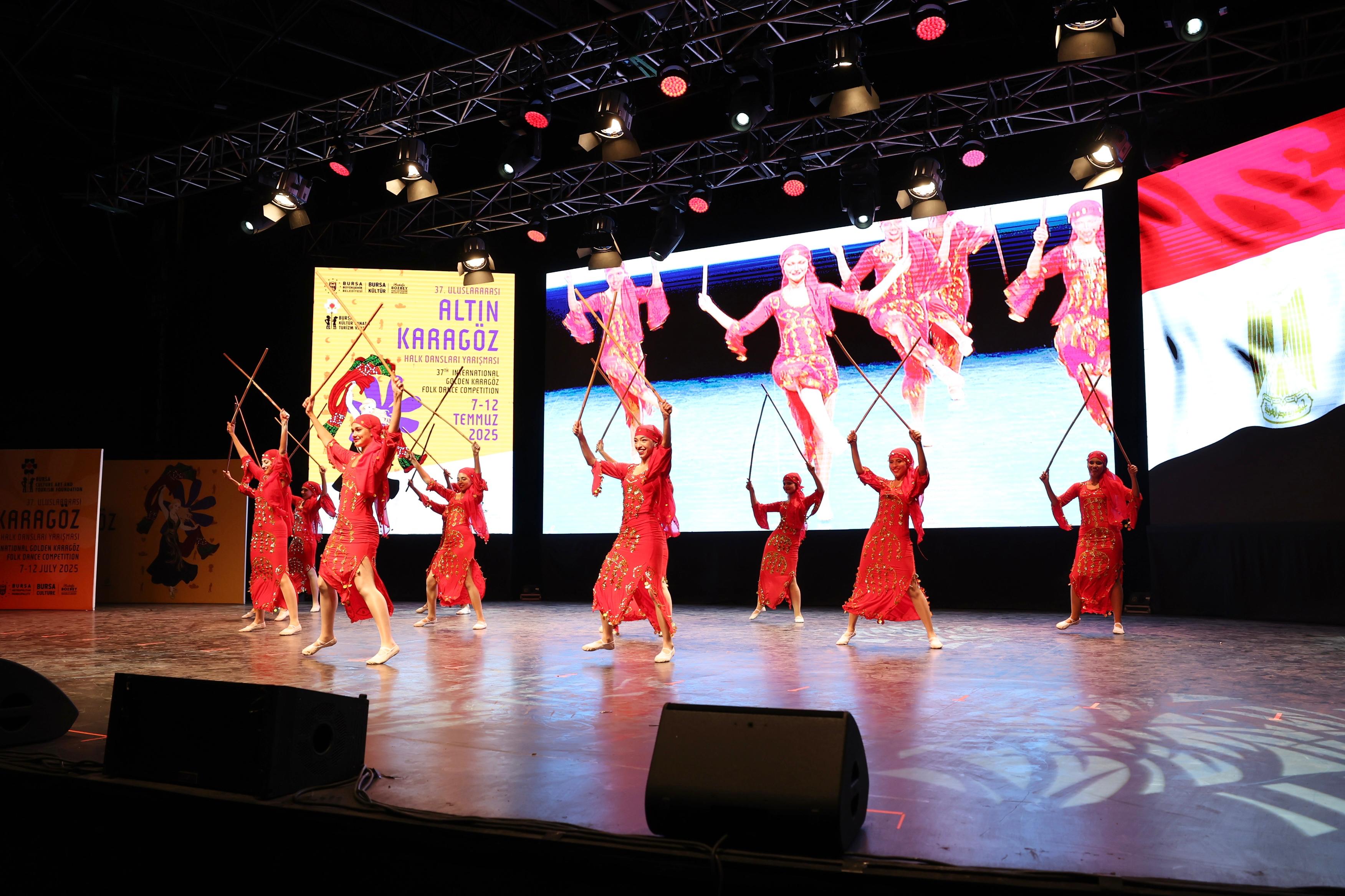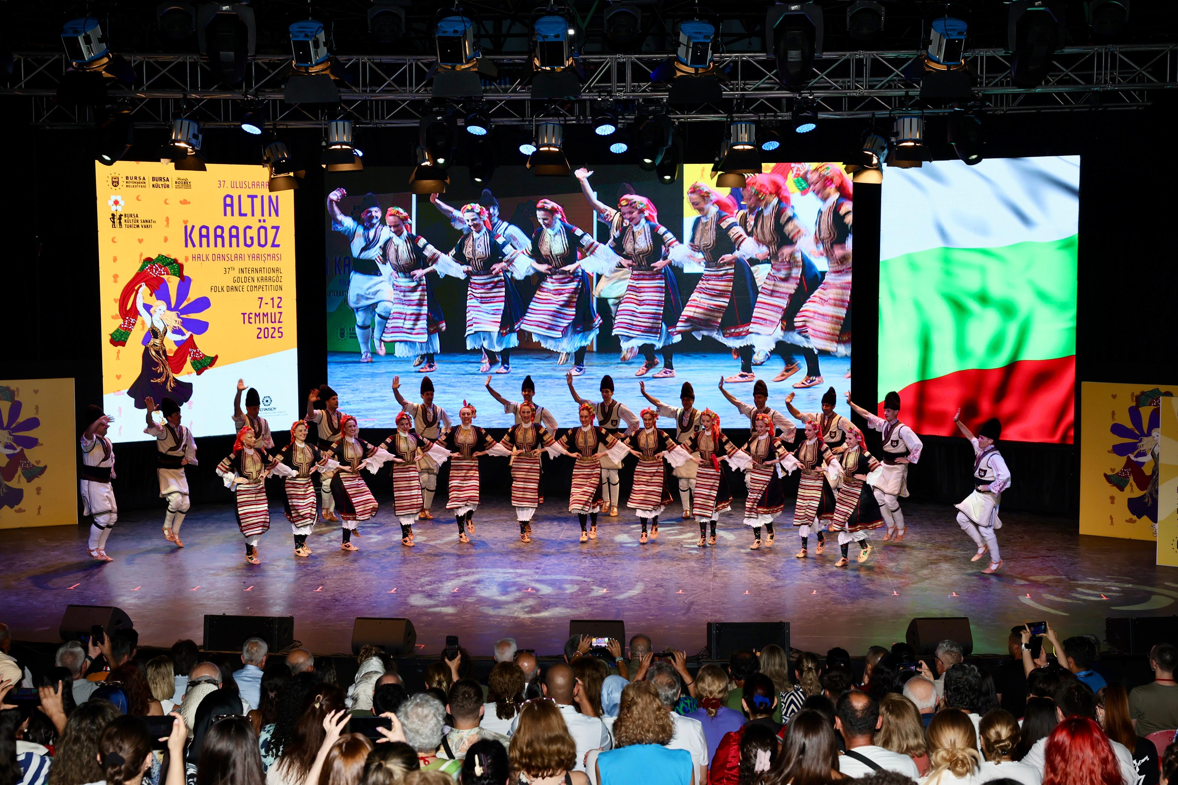 BURSA – Bu yıl 37'ncisi düzenlenen Uluslararası Altın Karagöz Halk Dansları Yarışması, 16 farklı ülkeden ve Bursa’dan katılan halk dansları topluluklarının Kültürpark Açıkhava Tiyatrosu’ndaki renkli dans gösterileriyle başladı.