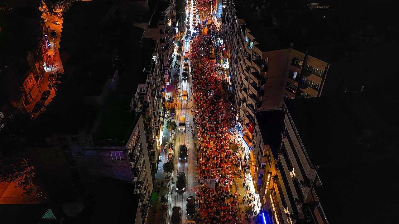 - TARİHİ BELEDİYE BİNASI ÖNÜNDE TOPLANAN ON BİNLERCE BURSALI, OLUŞTURDUKLARI FENER ALAYIYLA UNUTULMAZ BİR MANZARA OLUŞTURDU
