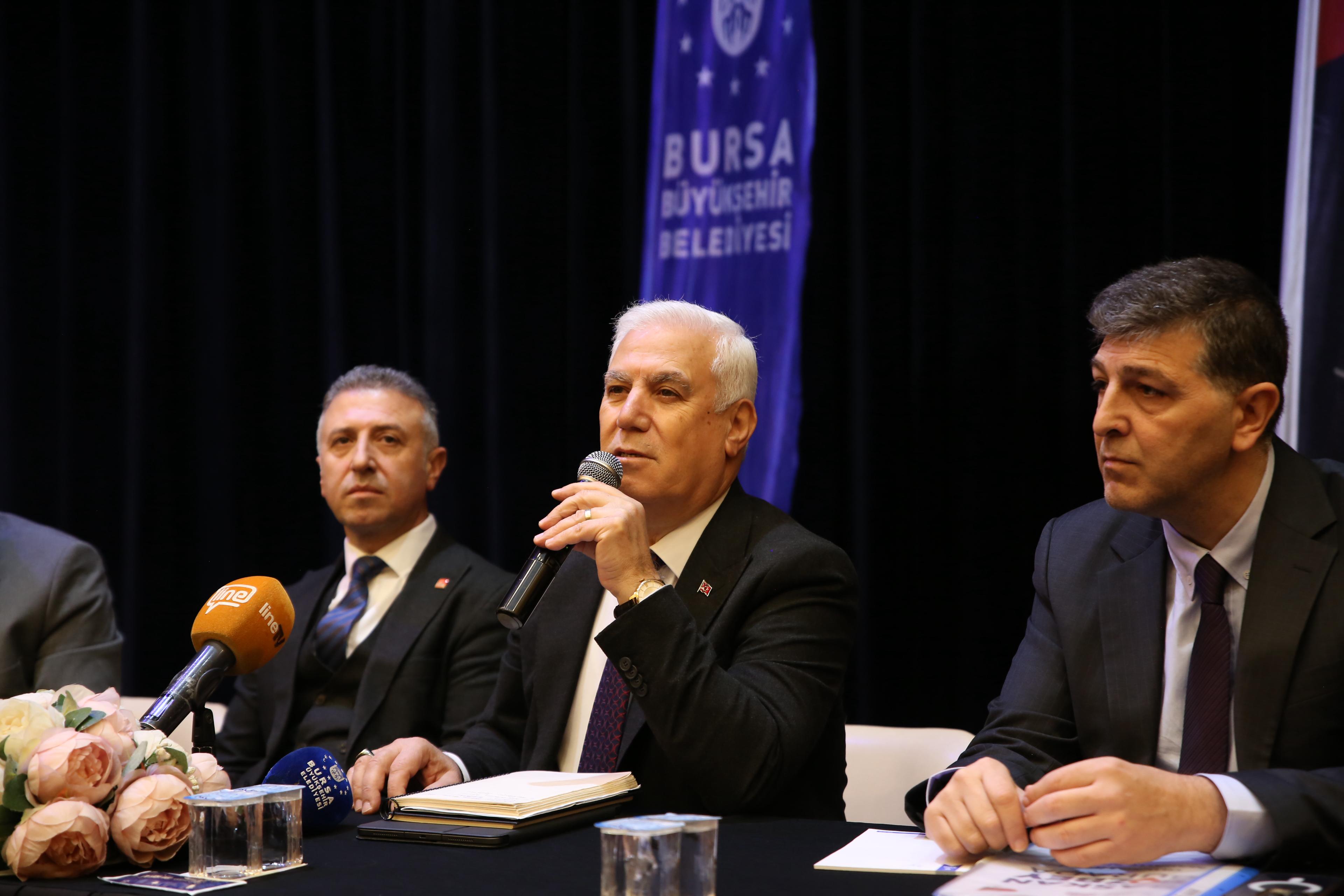 Başkan Mustafa Bozbey, daha sonra Adile Naşit Kültür Merkezi’nde Yıldırım ilçesindeki muhtarlarla bir araya geldi. Yıldırım Muhtarlar Derneği Başkan Muhsin Sak'ın da yer aldığı buluşmada muhtarların taleplerini tek tek dinleyen Başkan Bozbey, her bir mahalleye eşit ve adil hizmet anlayışını sürdüreceklerini ifade etti. ‘Başkan Bozbey Burada’ programı kapsamında Uludağ Taksi Durağı'na da uğrayarak taksicilerle buluşan Başkan Mustafa Bozbey, esnafın sorunlarını ve taleplerini dinleyerek not aldı.
