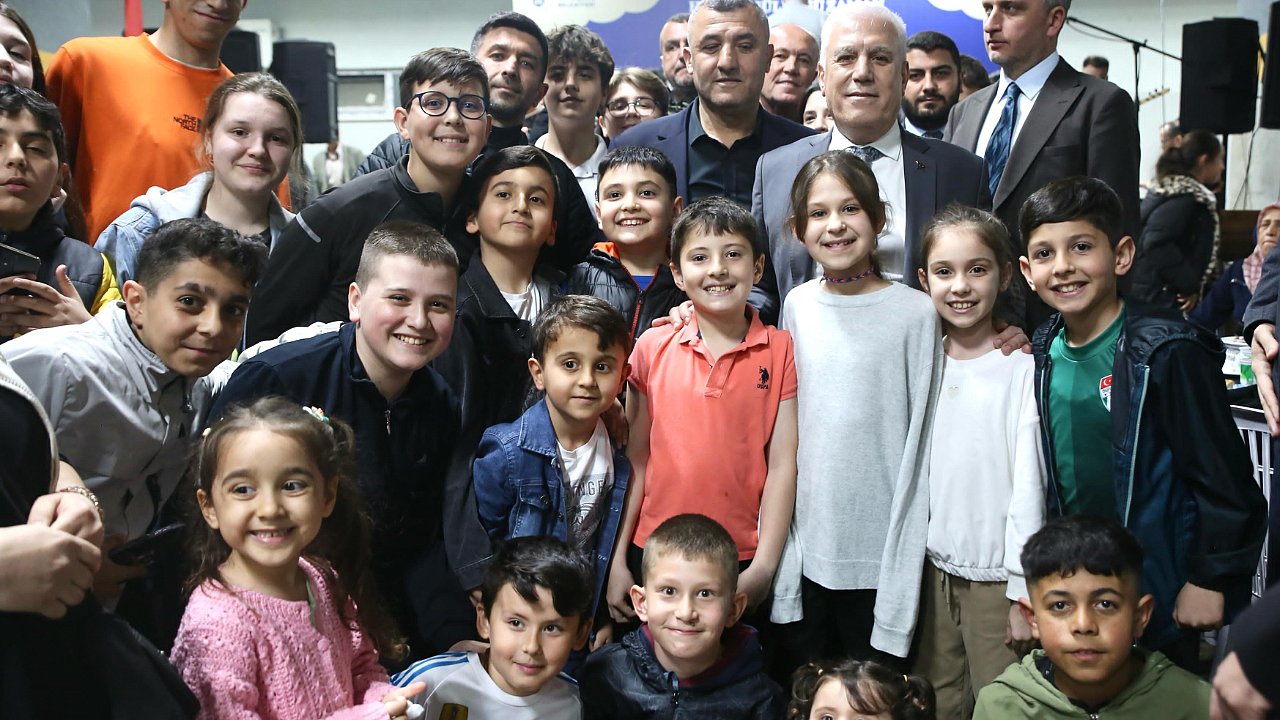 BURSA – Bursa Büyükşehir Belediye Başkanı Mustafa Bozbey, Yunuseli Mahallesi’nde düzenlenen iftar programında gençlere halı saha müjdesi verdi.