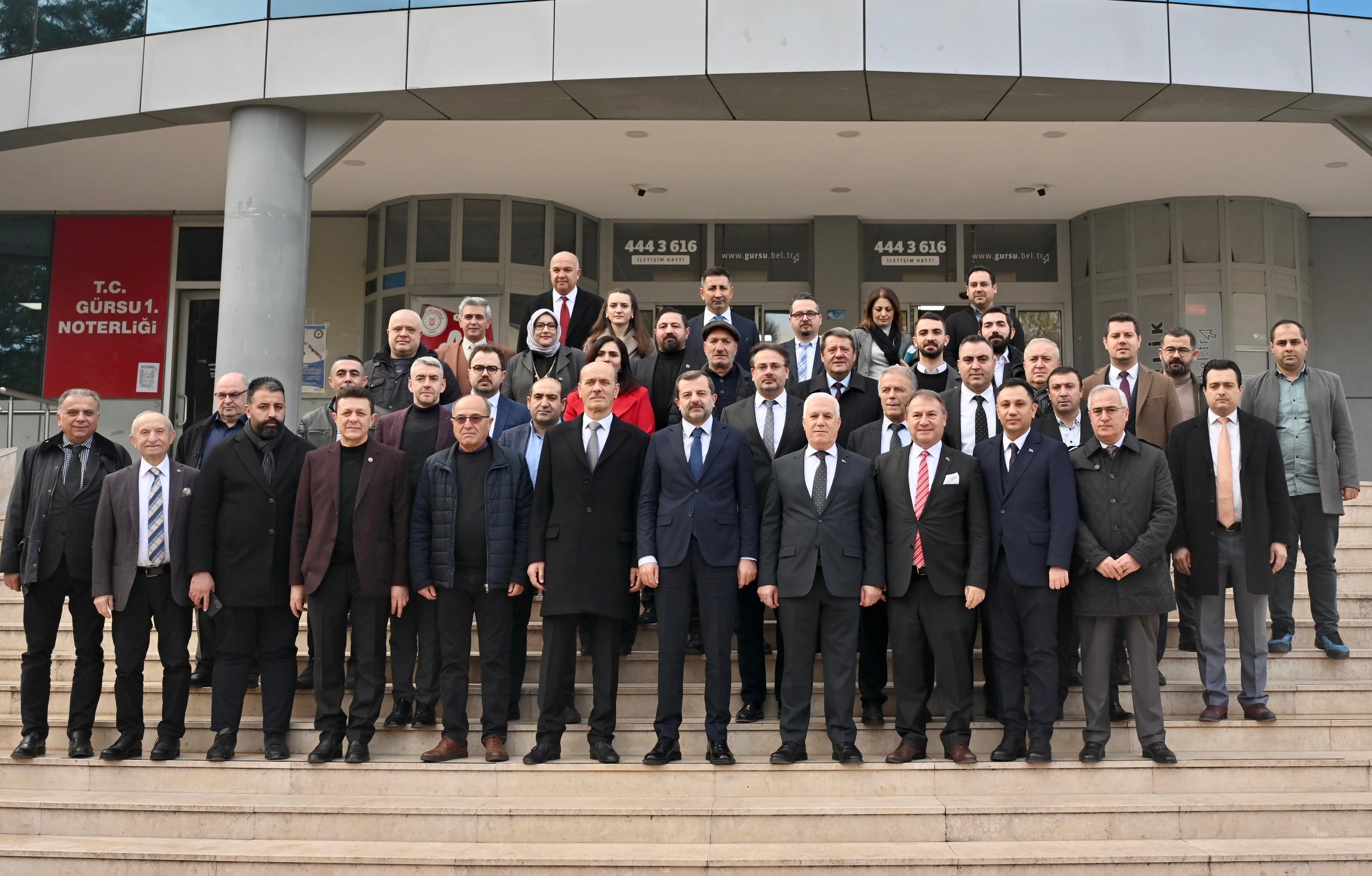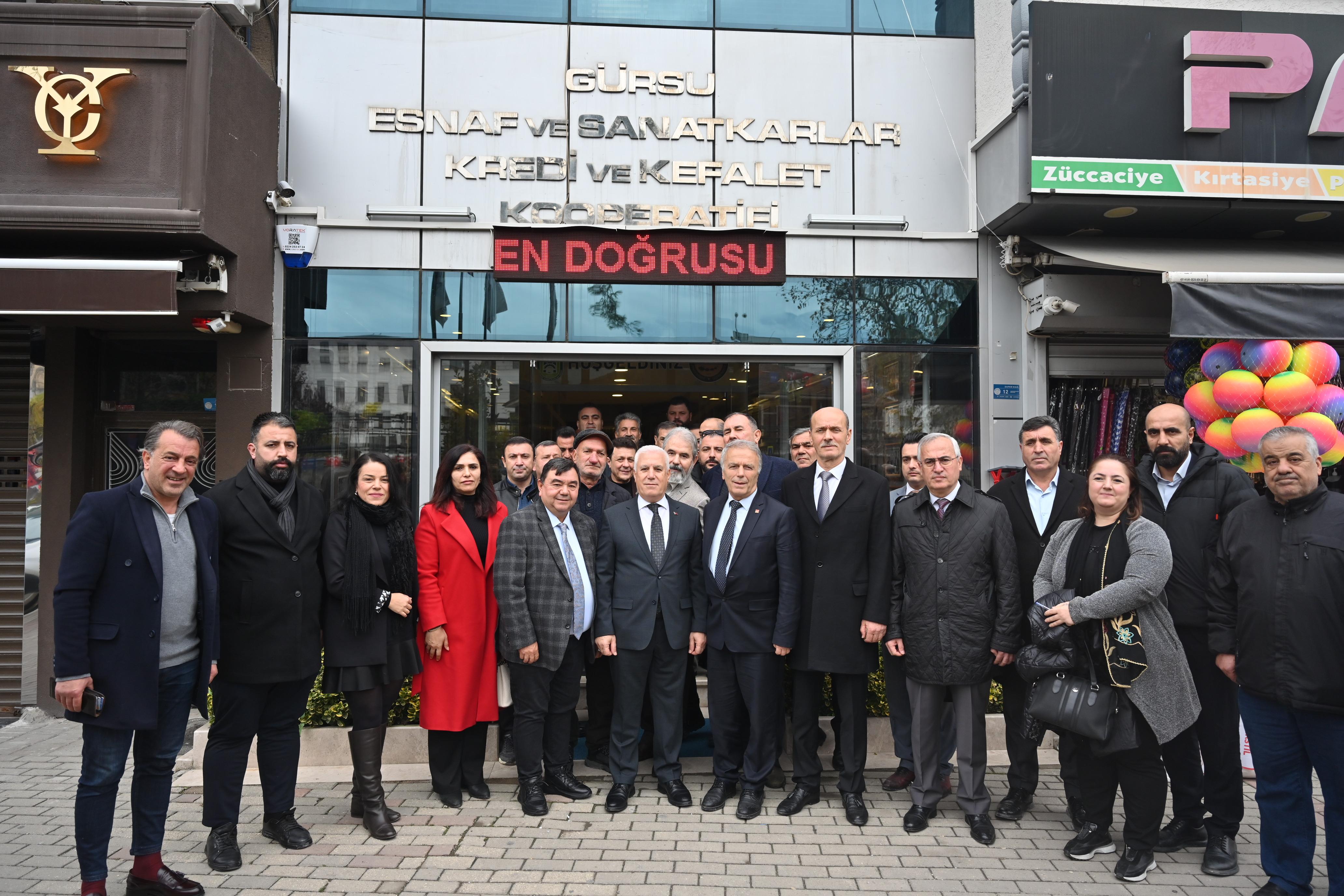 İlk olarak Gürsu Kaymakamı Murat Kütük’ü ziyaret eden Başkan Mustafa Bozbey’e temaslarında CHP Gürsu İlçe Başkanı Muhammet Aydın da eşlik etti. İlçede yaşanan sorunların çözümüne yönelik değerlendirmelerin yapıldığını görüşmede, düzensiz göçün etkilerinin ortaya çıkardığı toplumsal ve ekonomik sorunlar da ele alındı. Başkan Bozbey, daha sonra Gürsu Belediye Başkanı Mustafa Işık’ı makamında ziyaret etti. Gürsu’nun mevcut durumunun ve geleceğe yönelik projelerinin konuşulduğu ziyarette, ortak çalışma ve iş birliğinin önemine vurgu yapılarak vatandaşların talepleri değerlendirildi. Program kapsamında Gürsu Muhtarlar Derneği’ni, Gürsu Ziraat Odası’nı, Gürsu Esnaf ve Sanatkarlar Kredi ve Kefalet Kooperatifi’ni de ziyaret eden Başkan Bozbey, muhtarların ve üreticilerin taleplerini dinleyerek ihtiyaç duyulan noktalarda çalışmaların hızla başlatılacağını dile getirdi. Başkan Mustafa Bozbey, ziyaretlerin ardından Gürsu Belediyesi önündeki alanda vatandaşlarla buluştu. Özel olarak hazırlanan otobüsteki makamında halkın talep ve önerilerini dinleyen Başkan Bozbey, çözüm önerilerini ve projelerini de anlattı.