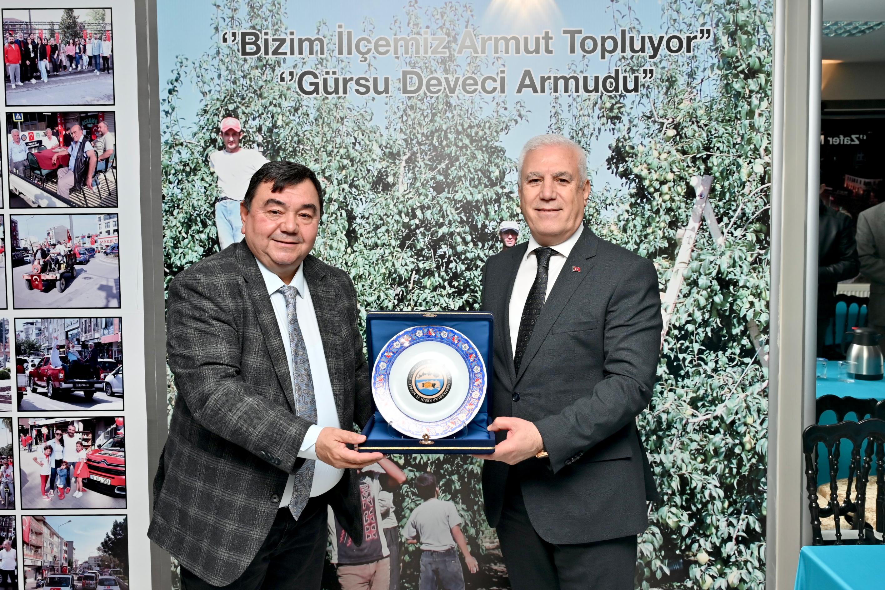Bursa Büyükşehir Belediye Başkanı Mustafa Bozbey, Başkan Bozbey Burada’ projesi kapsamında toprağı çok değerli olan Gürsu ilçesini ziyaret ettiklerini söyledi. Armut üretimi konusunda Türkiye’nin en önemli bölgelerinden birisi olduğunu belirten Başkan Bozbey, üretim yaparak topraklarını koruyan çiftçilere teşekkür etti. Kurumlara yaptıkları ziyaretlerde talepleri aldıklarını ifade eden Başkan Bozbey, önümüzdeki yıllarda Gürsu’nun sorunlarını büyük ölçüde çözmüş olacaklarını dile getirdi. Öncelikle ulaşımla ilgili konuları gündemlerine alacaklarını anlatan Başkan Bozbey, “Gürsu’da aynı zamanda sanayi de var. Gürsu ve Kestel tarafında gelişen sanayinin olumsuz etkilerini hemşehrilerimiz yaşıyor. Havamızın kirli olduğunu biliyoruz. Hava kirliliği konusunda çalışmalarımızı artırıyoruz. Fabrikaların filtrasyon sistemlerini gözden geçirmesini istiyoruz. İnsanlarımızı düşünerek, çevreyi koruma anlayışıyla filtrelerin, arıtma tesislerinin tam anlamıyla çalıştırılması gerekir. Halkımızdan derelerin kirli akması, havanın kirli olması konusunda yoğun şikayet aldık. Bursa iş dünyasının çevreyi koruyan bir anlayışa sahip olduğuna inanmak istiyorum” dedi.