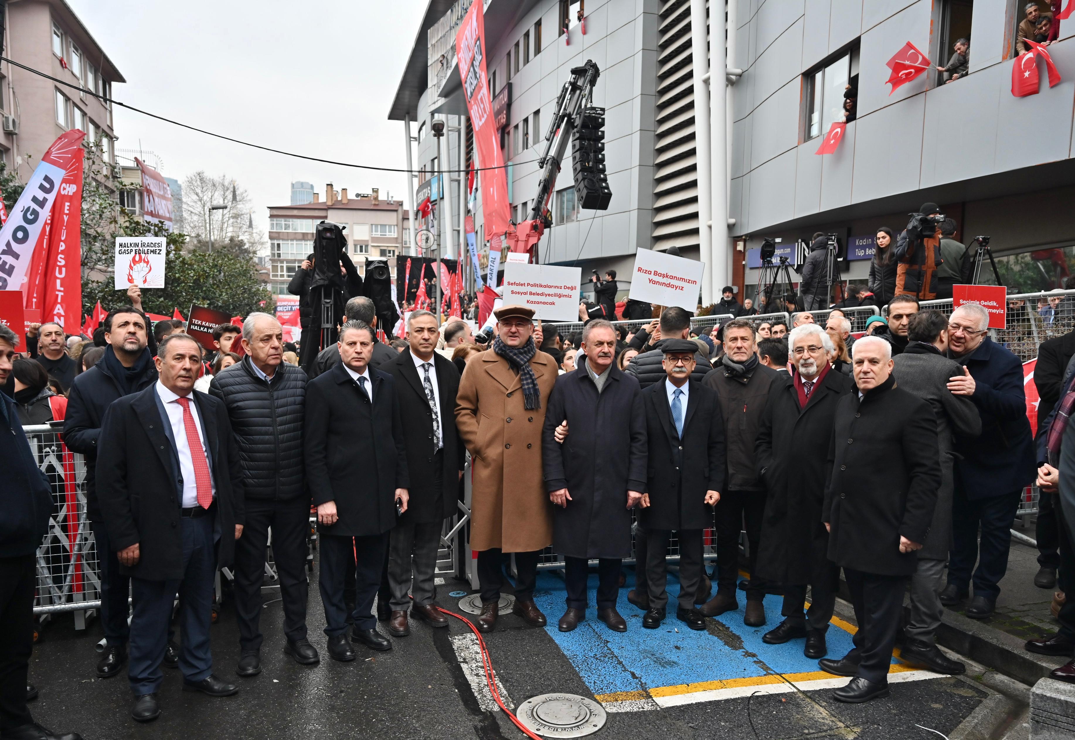 İSTANBUL – CHP'li belediye başkanları, Beşiktaş Belediye Başkanı Rıza Akpolat’ın gözaltına alınmasına tepki göstermek ve Akpolat'a destek olmak için İstanbul'a geldi. Bursa Büyükşehir Belediye Başkanı Mustafa Bozbey, Akpolat'a yönelik yapılan operasyon şeklinin kabul edilemez olduğunu, adaletin yasalara uygun bir şekilde işlemesi gerektiğini söyledi.