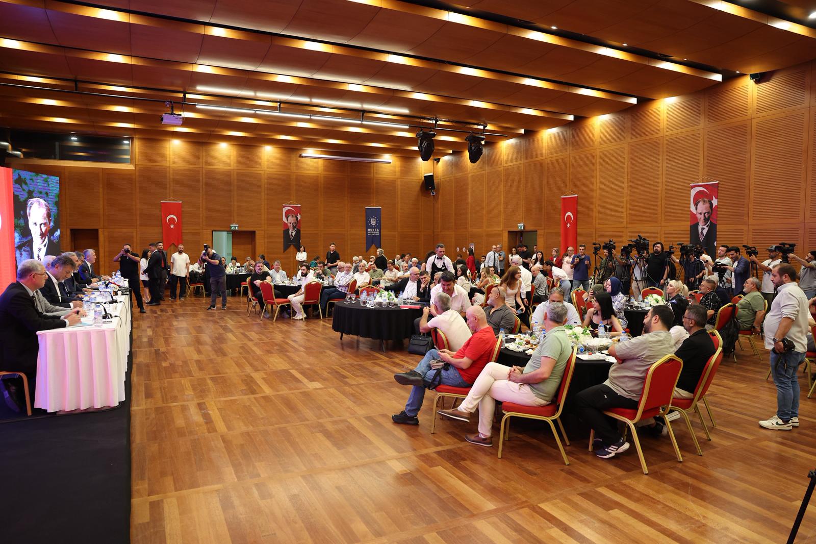 Atatürk Kültür Merkezi Merinos Yerleşkesi’ndeki Temmuz Ayı Değerlendirme Toplantısı'nda konuşan Başkan Mustafa Bozbey, bir ay boyunca yapılan çalışmalar ve gündeme dair konular hakkında bilgi verdi. Ana teması ulaşımdaki fiyat düzenlemeleri, abonman sistemi, su tasarrufu ve yangınlar olan toplantıya, CHP Bursa İl Başkanı Nihat Yeşiltaş, CHP Bursa Milletvekilleri Nurhayat Altaca Kayışoğlu, Hasan Öztürk ve Orhan Sarıbal, Osmangazi Belediye Başkanı Erkan Aydın, Mustafakemalpaşa Belediye Başkanı Şükrü Erdem, Mudanya Belediye Başkanı Deniz Dalgıç, Gemlik Belediye Başkanı Şükrü Deviren, Harmancık Belediye Başkanı Haşim Ali Arıkan, Büyükşehir Belediyesi Genel Sekreteri Doç. Dr. Ergül Halisçelik, genel sekreter yardımcıları, Büyükşehir Belediyesi ile iştiraklerin yöneticileri ve basın mensupları katıldı.