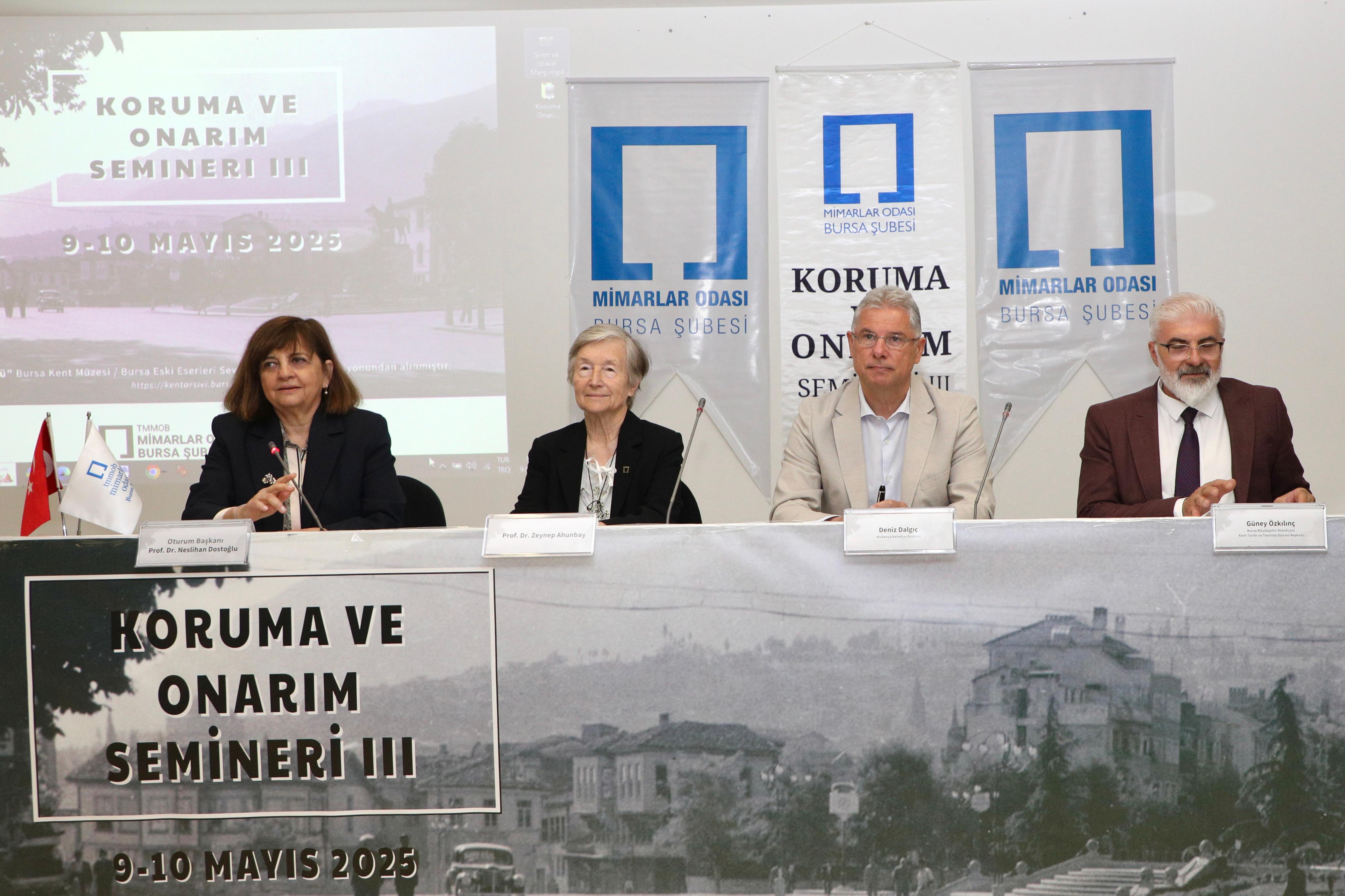 TMMOB Mimarlar Odası Bursa Şubesi’nin düzenlediği “Koruma ve Onarım Semineri”nde konuşan