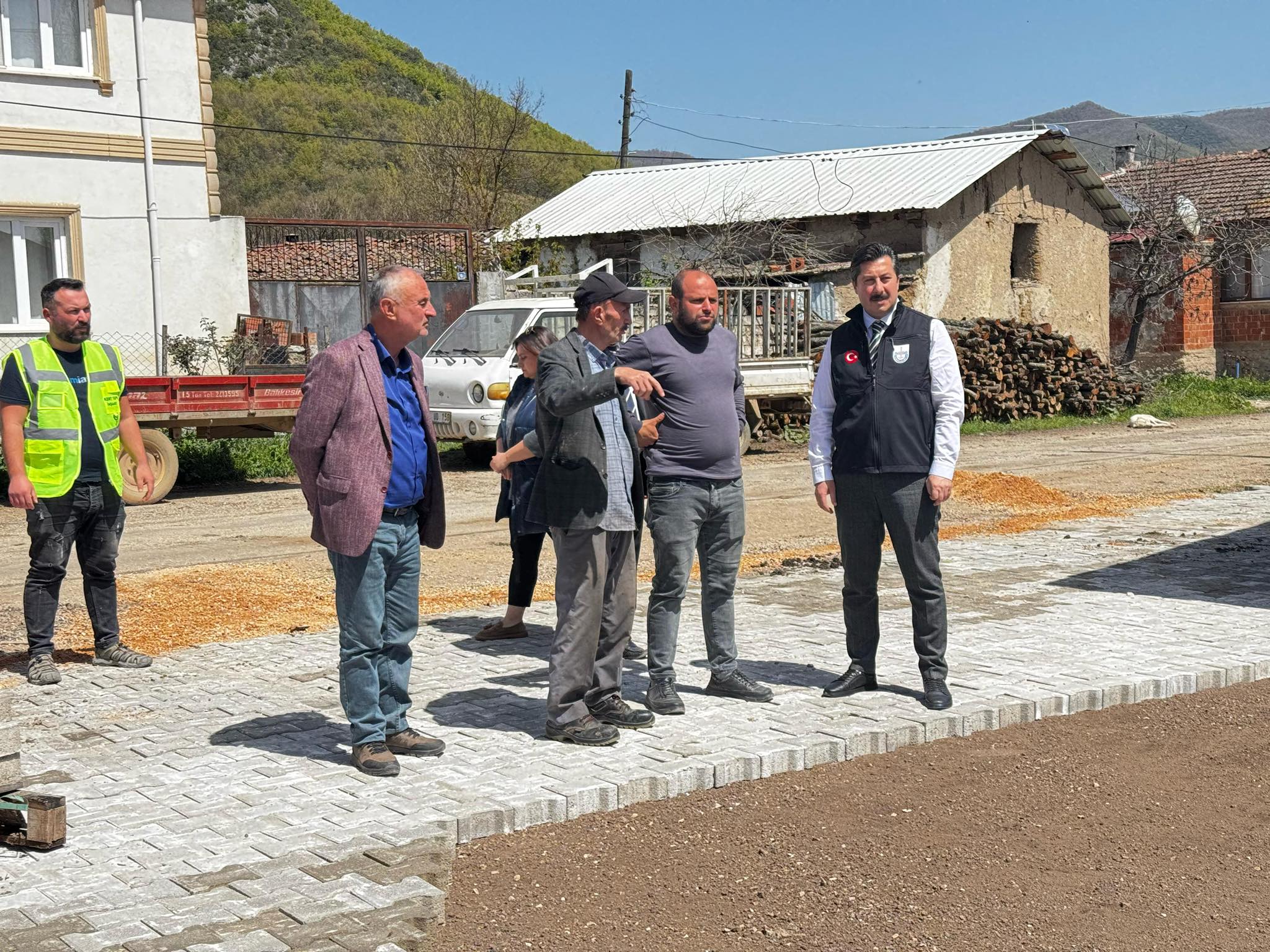Yenişehir Belediye Başkanı Ercan Özel, Burcun Mahallesi’nde yapımı devam eden parke taşı döşeme çalışmalarını denetledi.