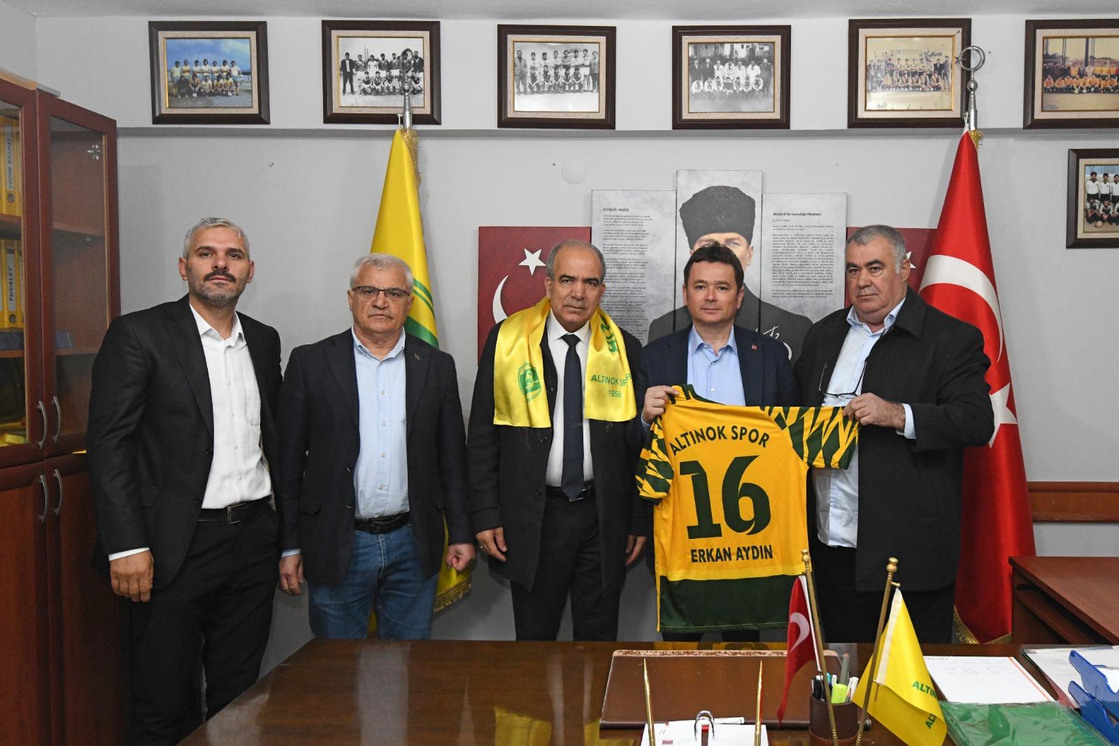 Spor Kulübü’nü ziyaret eden Başkan Aydın’a, kulüp yönetimi tarafından forma hediye