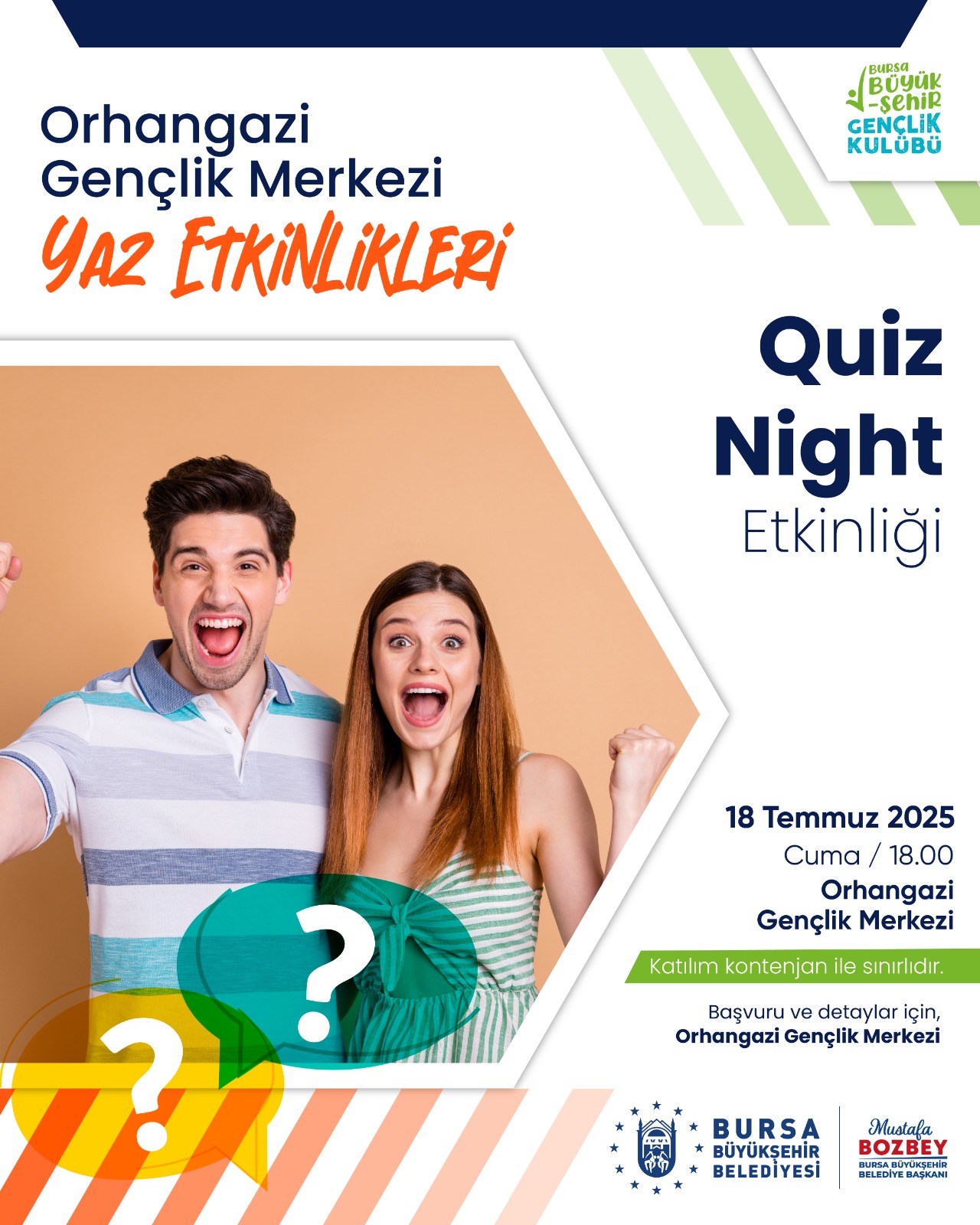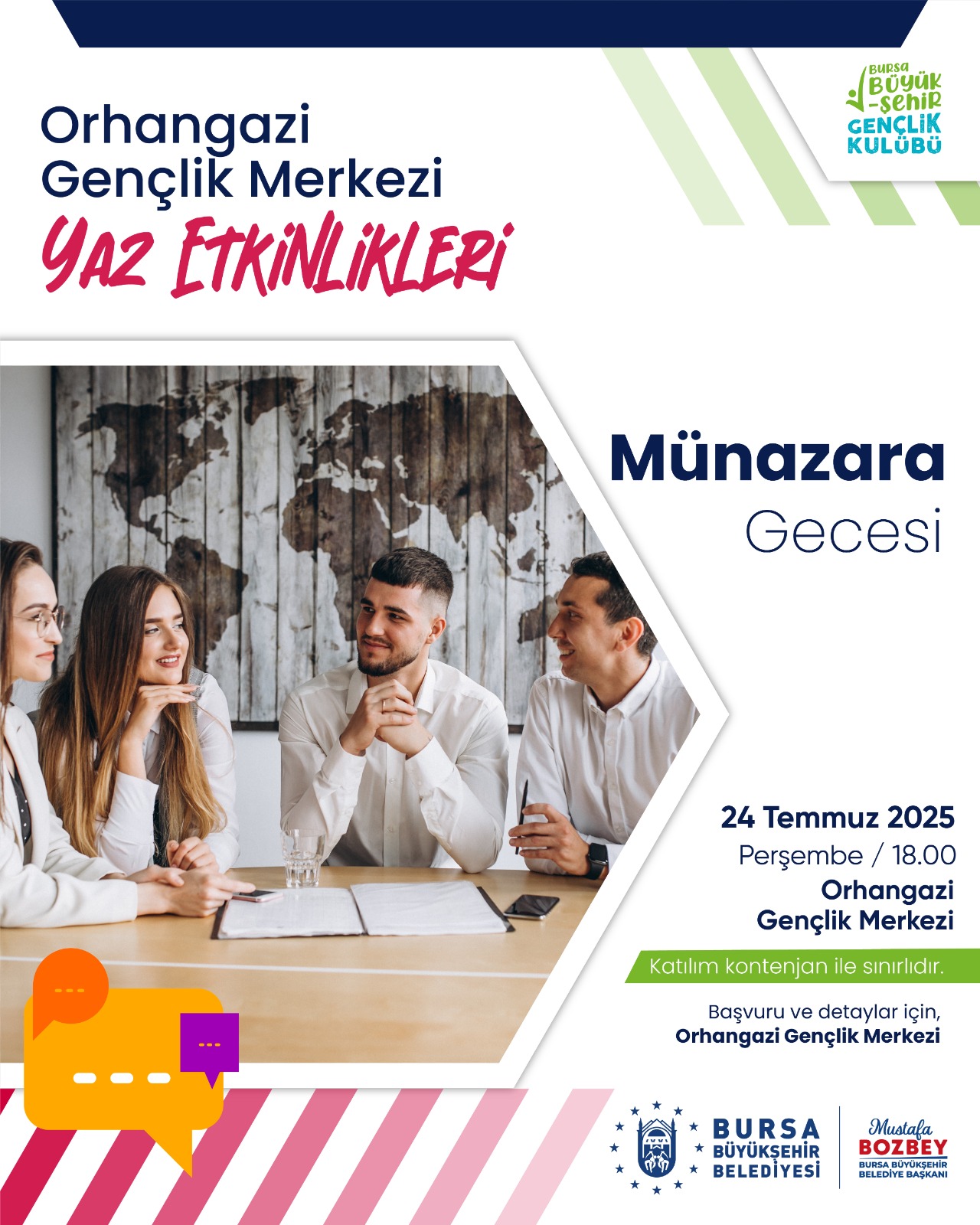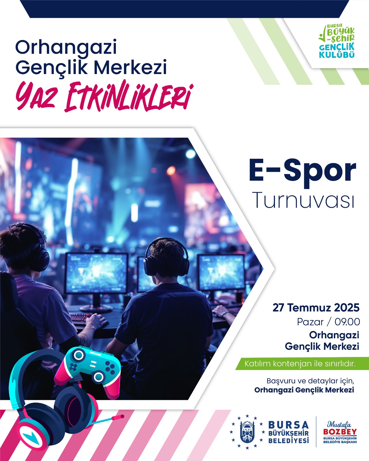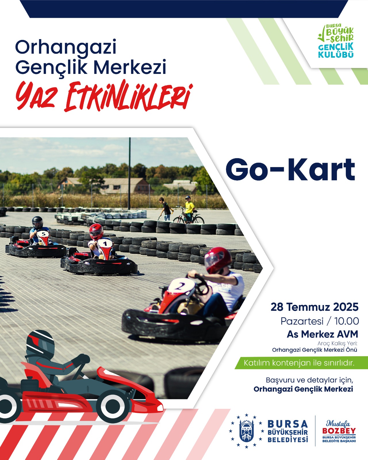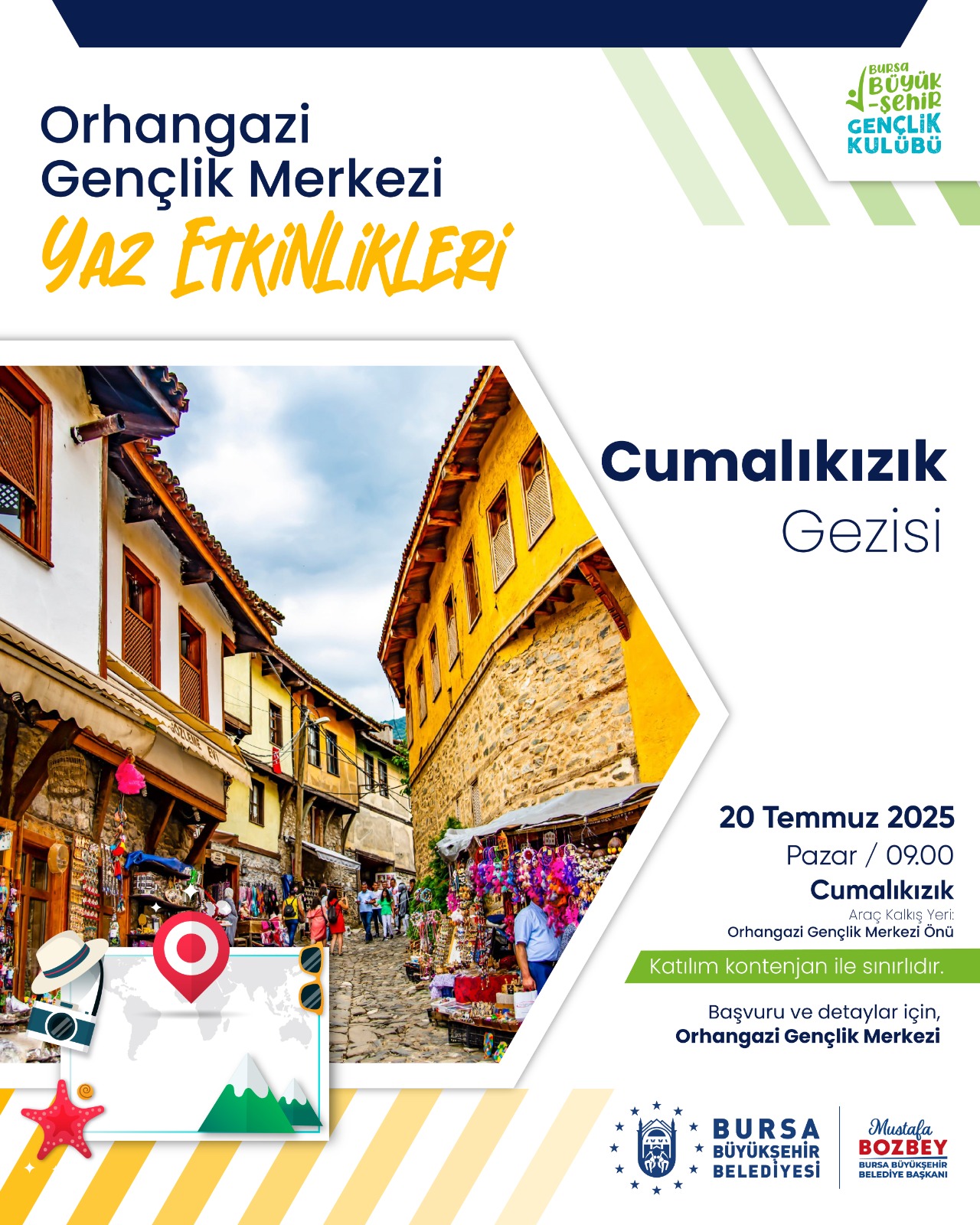 Bursa Büyükşehir Belediyesi, gençlerin yaz aylarını spor, atölye ve keşif gezileriyle dolu dolu geçirebilmesi için kapsamlı bir etkinlik programı hazırladı. Orhangazi Gençlik Merkezi ev sahipliğinde yapılacak olan etkinliklerle, Bursalı gençler yaz tatilini hem eğlenerek hem de öğrenecek geçirecek. Temmuz ayı boyunca düzenlenecek olan bowling ve sınav gecesi etkinliği, sinema gösterimi, dart turnuvası, Cumalıkızık ve Gölyazı gezisi, interaktif oyunlar, karaoke gecesi, ritim atölyesi, diyetisyen danışmanlığı, münazara gecesi, yoga seansı, e-spor turnuvası, go-kart ve wake up partiyle gençliğin kalbi Bursa’da atacak. Detaylı bilgi ve başvuru için Orhangazi Gençlik Merkezi ziyaret edilebilir veya bbgenclikkulubu sosyal medya hesapları takip edilebilir.