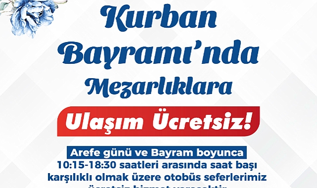 Ayrıca arife günü ile bayramın 4 günü boyunca vatandaşların mezarlık ziyaretlerini daha kolay gerçekleştirebilmeleri amacıyla ücretsiz otobüs seferleri düzenlenecek. 10:15 ile 18:30 saatleri arasında, saatte bir karşılıklı olarak yapılacak seferlerle vatandaşlar Hamitler, Erdoğanköy ve Hasköy mezarlıklarına ücretsiz taşınacak.