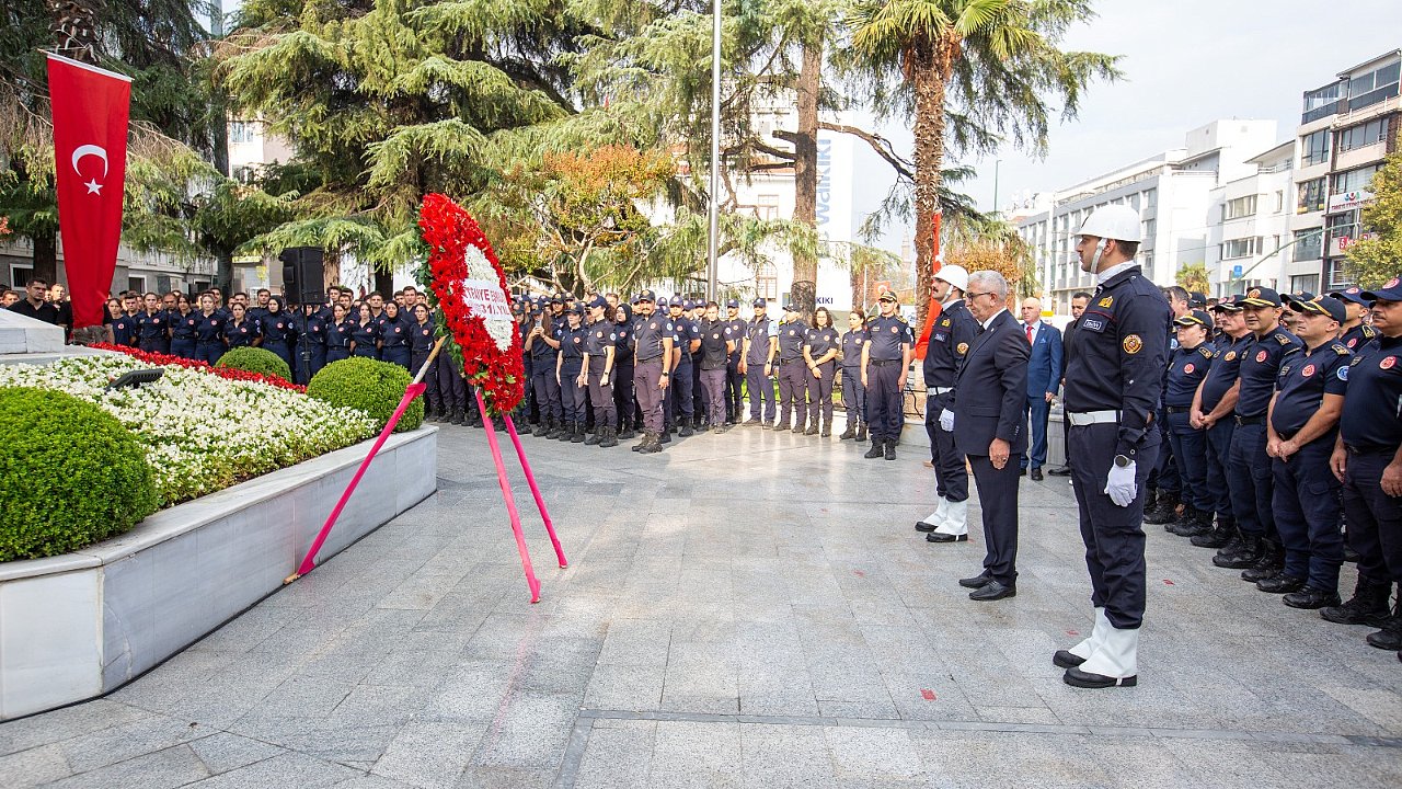 Bursa Büyükşehir Belediyesi İtfaiye Daire Başkanlığı tarafından düzenlenen törenler, Atatürk Anıtı’na çelenk sunulması ile başladı. İtfaiye Dairesi Başkanı Canalp Berkdemir ve itfaiye erlerinin saygı duruşunda bulunmasının ardından Büyükşehir Belediyesi Bandosu eşliğinde İstiklal Marşı okundu.