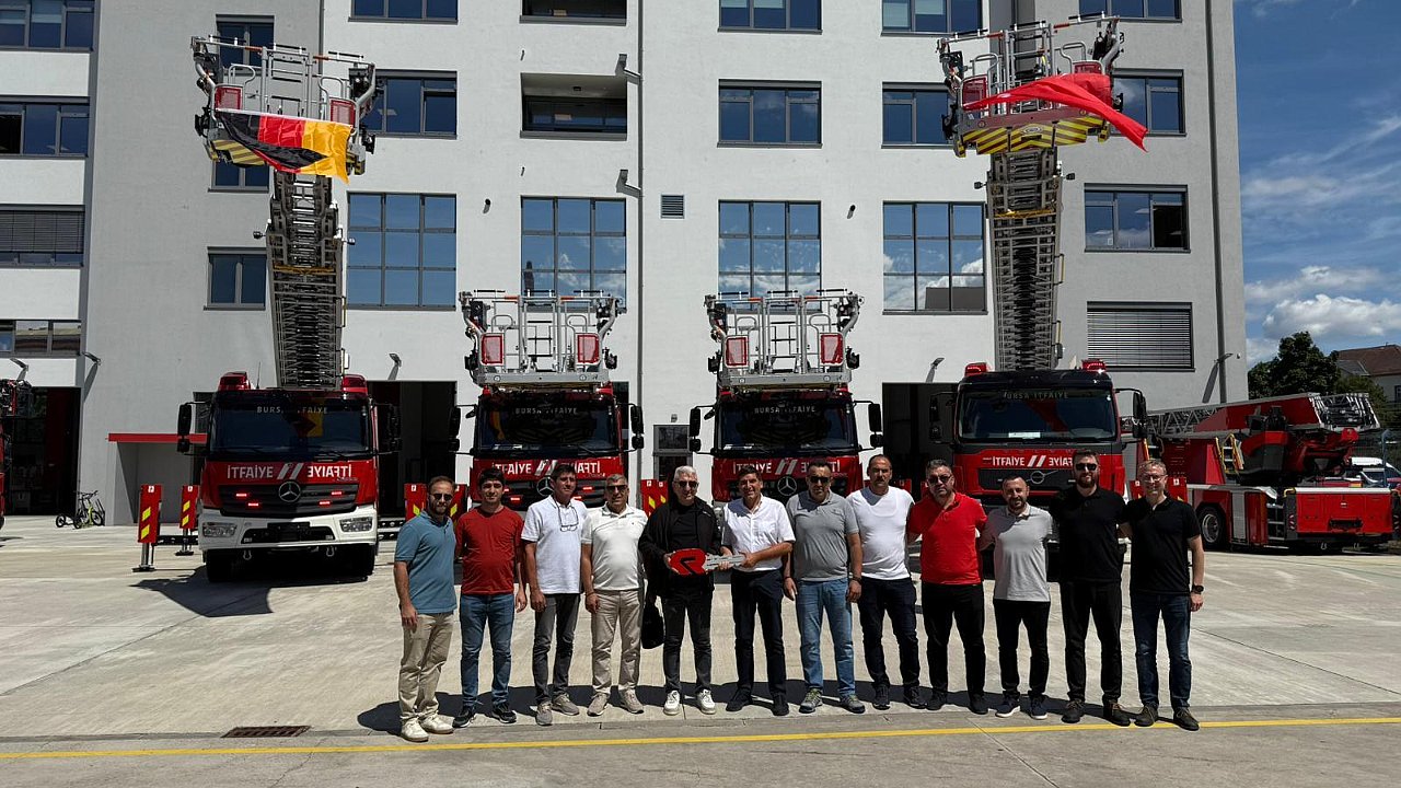 Bursa’yı geleceğe taşıyacak projeleri bilimsel veriler ışığında ve kararlı adımlarla hayata geçiren Büyükşehir Belediyesi, halkın huzur ve güvenliğinin sağlanması noktasında gerekli yatırımları da yapıyor. En önemli belediyecilik hizmetlerinden olan itfaiye teşkilatını ekip ve ekipman yönünden sürekli güçlendiren Büyükşehir Belediyesi, son olarak 3 adet 32 metre ve 1 adet 42 metre olmak üzere toplam 4 adet tam otomatik hidrolik mafsallı merdivenli itfaiye aracını da itfaiye filosuna katmaya hazırlanıyor. İtfaiye Dairesi Başkanı Canalp Berkdemir ve teknik personelden oluşan bir ekip, Almanya’nın Karlshure kentine giderek araçların ön kabul işlemlerini tamamladı. Temsili anahtar teslimleri yapılan araçlar, Bursa’ya doğru yola çıkarıldı.