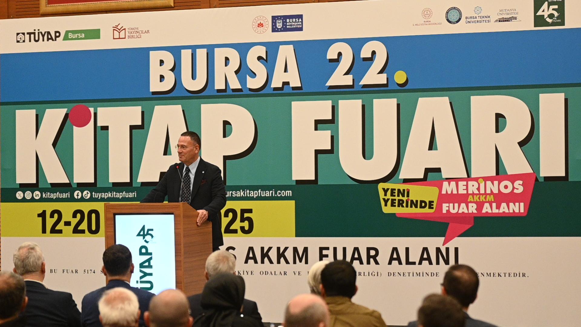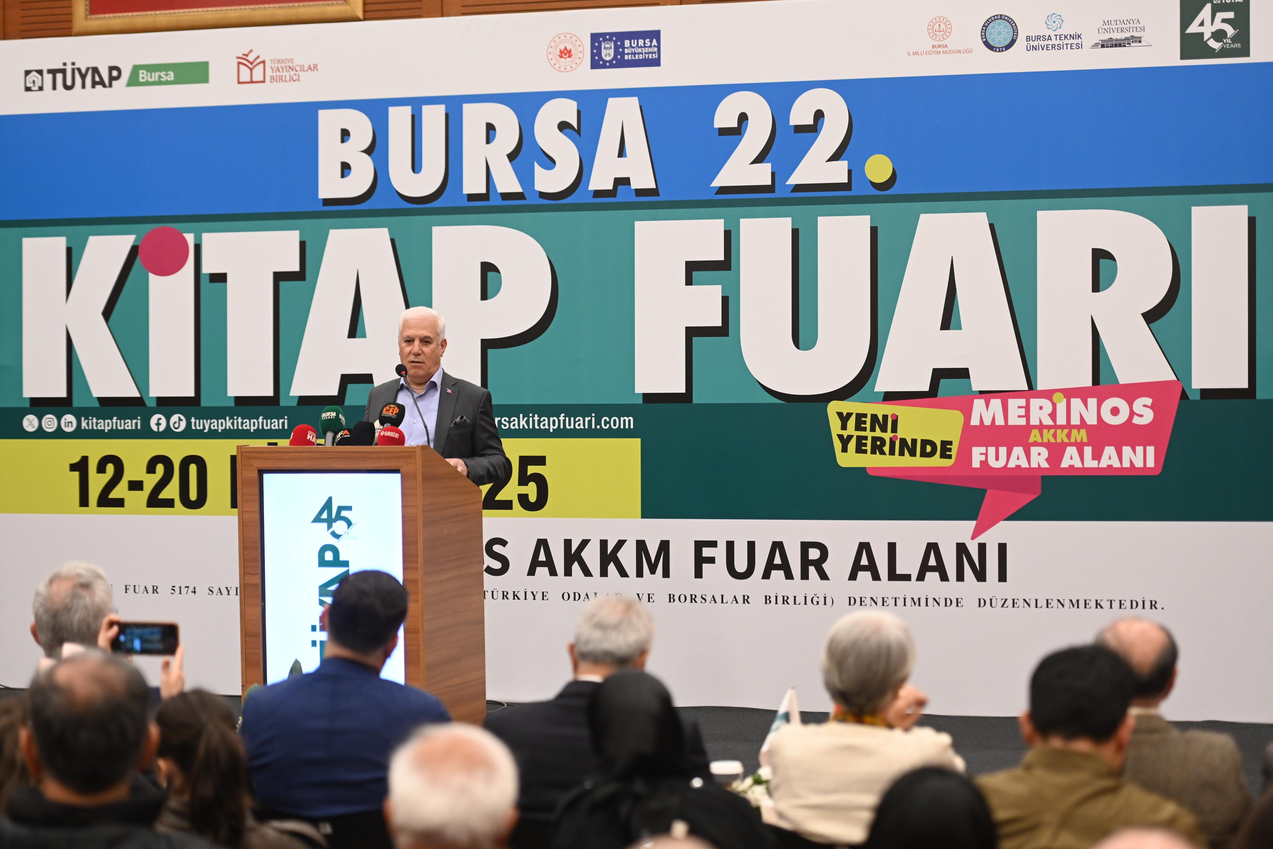 Bursa Büyükşehir Belediyesi’nin katkılarıyla Tüyap Fuarcılık Grubu ve Türkiye Yayıncılar Birliği işbirliğiyle düzenlenen 22. Bursa Kitap Fuarı, Atatürk Kültür Merkezi Merinos Yerleşkesi Fuar Alanı’nda binlerce kitapseveri ağırlıyor. 12-20 Nisan tarihleri arasında gerçekleştirilecek olan fuar, bu yıl yeni yerinde daha geniş ve modern bir mekânda kitap tutkunlarına kültür şöleni yaşatacak. Fuarda, yüzlerce yayınevi, binlerce kitap ve birbirinden değerli yazarlar kitapseverlerle buluşacak.