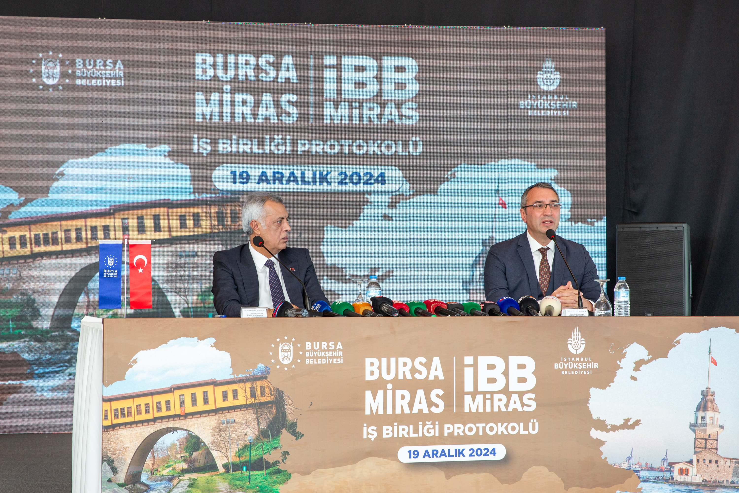 BURSA – Bursa Büyükşehir Belediyesi ile İstanbul Büyükşehir Belediyesi arasında iki kentin köklü geçmişine sahip çıkmak ve geleceğe aktarmak amacıyla ‘İBB Miras ve Bursa Miras’ iş birliği protokolü imzalandı.