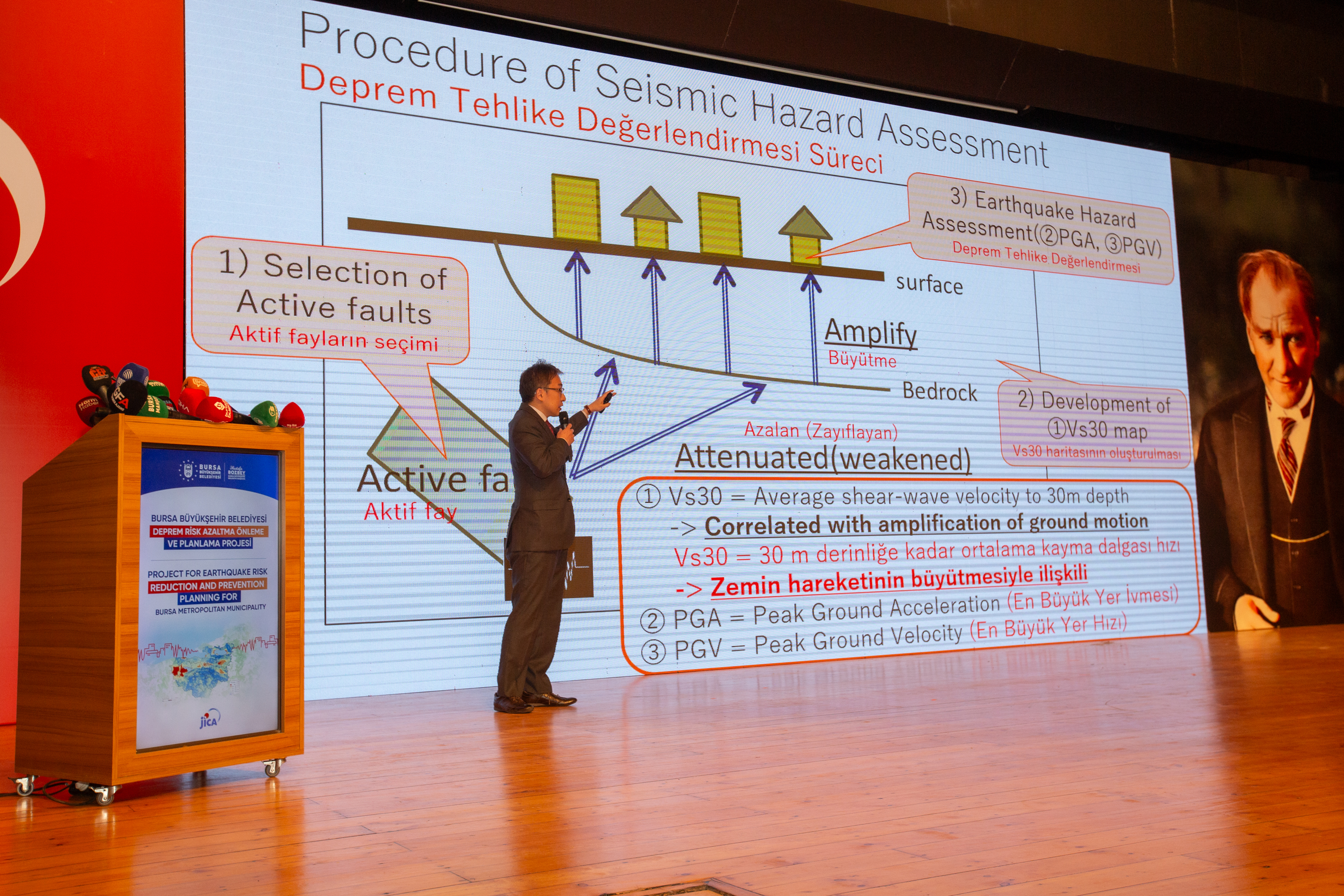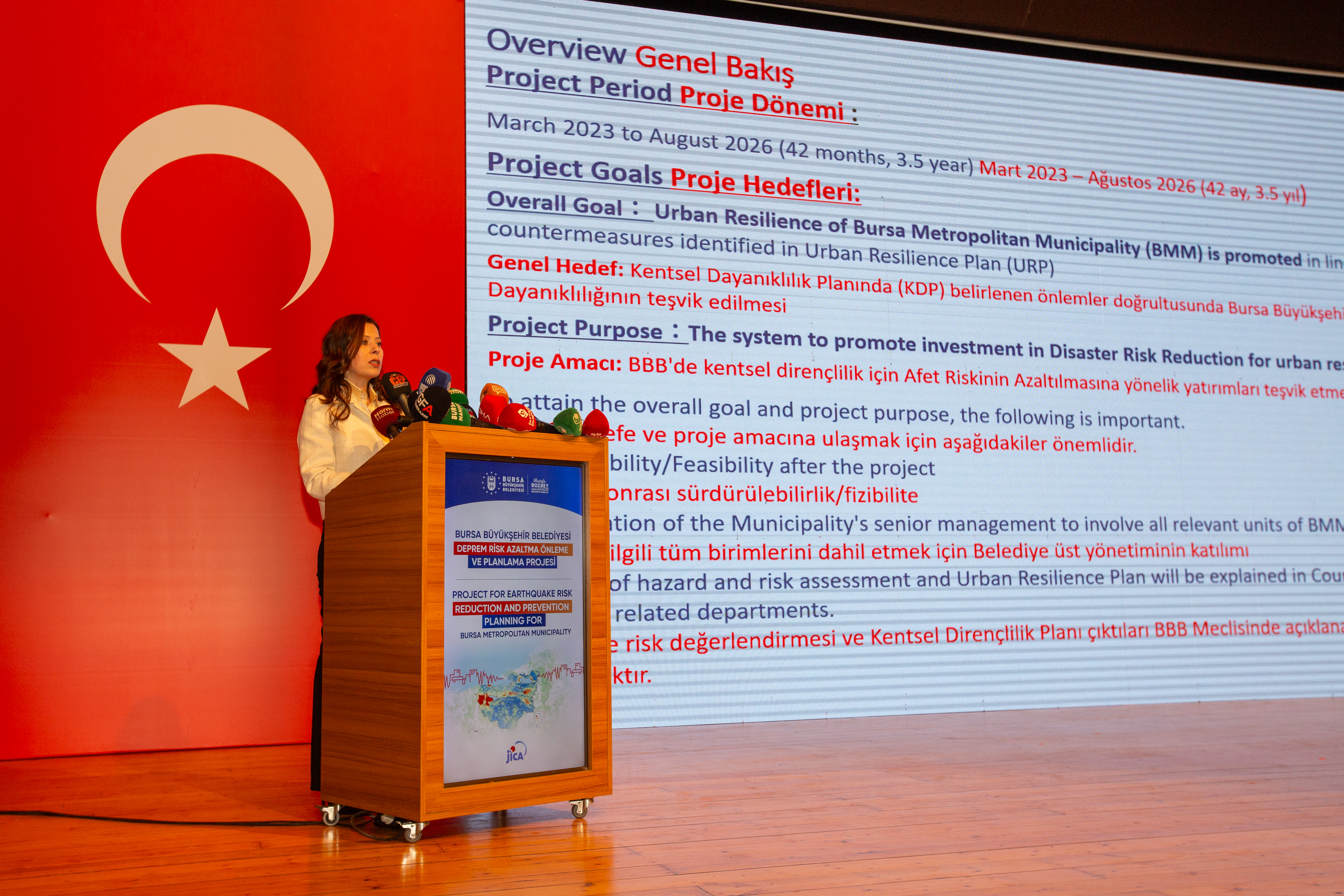 BURSA – Bursa Büyükşehir Belediyesi’nin Japonya Uluslararası İşbirliği Ajansı (JICA) ile birlikte yürüttüğü ‘Deprem Risk Azaltma ve Önleme Planlama Projesi’nin ilk çıktıları olan ‘Deprem tehlike değerlendirmesi', 'Bina risk değerlendirmesi', 'Altyapı ve kamu bina risk değerlendirmesi' sonuçları kamuoyuyla paylaşıldı.