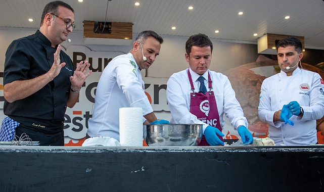Bursa Büyükşehir Belediyesi tarafından bu yıl üçüncüsü düzenlenecek olan ‘Bursa Gastronomi Festivali’ öncesinde, Bursa’nın eşsiz lezzetleri ‘Gastronomi Tırı’ aracılığı ile yine Bursalılarla buluşuyor. 13-14-15 Eylül tarihlerinde gerçekleşecek olan festival öncesi ilçe ilçe gezecek olan ‘Gastronomi Tırı’nın ilk durağı osmangazi Kent Meydanı oldu. Renkli etkinlikte Şef Dr. Esat Özata ile birlikte ‘Pideli Köfte’ yapan Osmangazi Belediye Başkanı Erkan Aydın’ın el lezzeti, tadım yapan Bursalılardan tam not aldı. Bursa Büyükşehir Belediyesi tarafından 13-14-15 Eylül tarihlerinde Merinos Parkı’nda düzenlenecek olan 3. bursa Gastronomi Festivali’nin heyecanı erken başladı. Festival öncesinde Bursa’nın lezzetlerini ilçelerle buluşturmak ve Bursalıları festivale davet etmek adına Büyükşehir Belediyesi iştiraklerinden Kültür AŞ. tarafından özenle hazırlanan ‘Gastronomi Tırı’, yola çıktı. İlk durak Osmangazi Kent Meydanı oldu. Büyükşehir Belediyesi Başkan Vekili Mehmet Aydın Saldız'ın da katıldığı renkli etkinlikte Osmangazi Belediye Başkanı Erkan Aydın, ‘Mobil Bursa Gastronomi Mutfağı’nda Şef Dr. Esat Özata ile birlikte ‘Pideli Köfte’ yaptı. Ünlü Şef Özata ve Aydın’ın birlikte yemek yaptığı anlar vatandaşlar tarafından ilgi ile takip edildi. Etkinliğin sonunda vatandaşlar tadım deneyiminde bulunurken ortaya çıkan ürünler tam not aldı.
