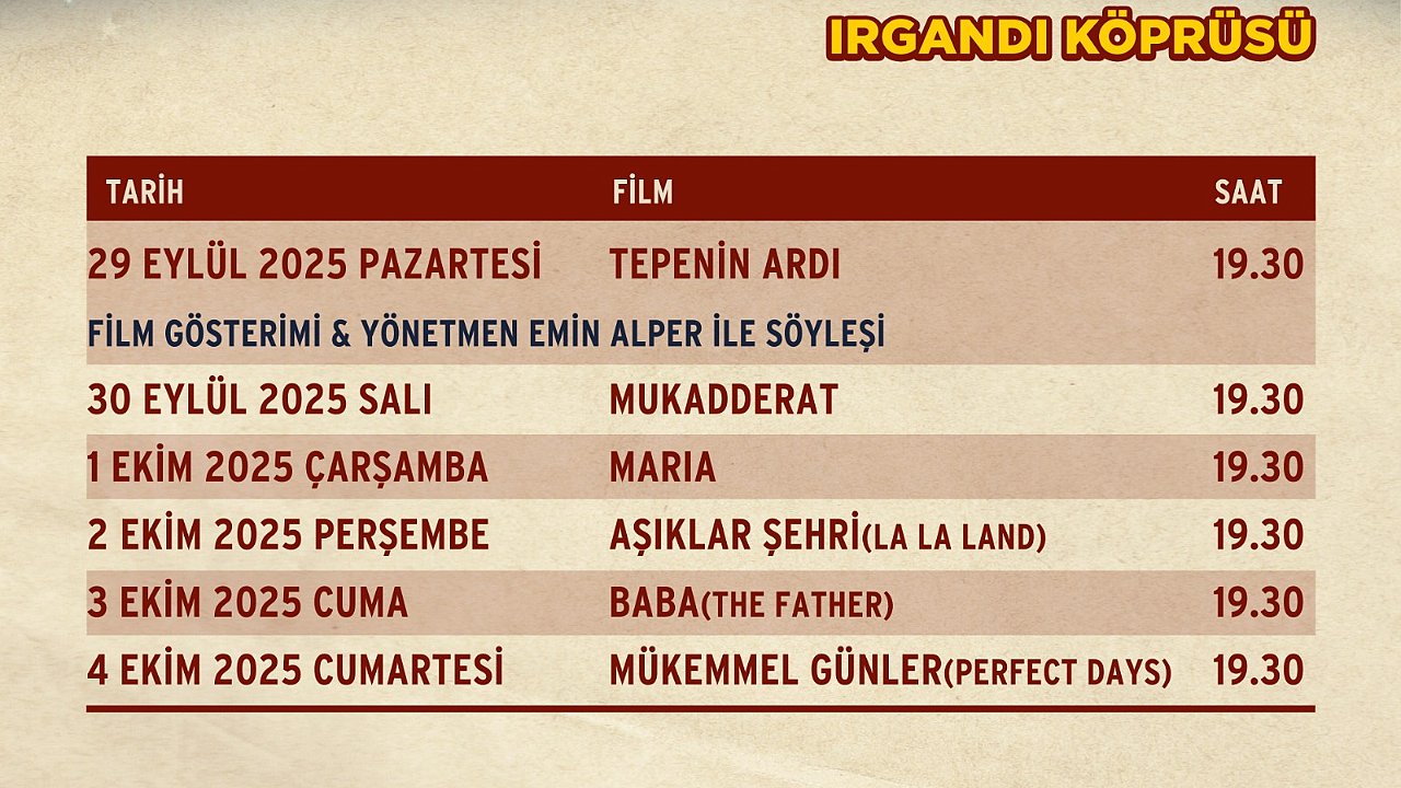 Irgandı Köprüsü, Atatürk Stadyumu Kütüphanesi önü, Merinos Parkı, Tayyare Kültür Merkezi ve ilçelerde gerçekleştirilecek gösterimler, Bursalılara yıldızların altında sinema keyfi yaşatacak. Bursa’nın tarihi ve kültürel mekânlarının büyülü atmosferinde yapılacak olan film gösterimleri, vatandaşlara hem yazdan kalma akşamların keyfini çıkarma hem de seçkin filmlerle buluşma fırsatı sunacak. Bursa Sinema Günleri kapsamında hazırlanan yönetmen söyleşileriyle de sinemanın mutfağına ışık tutulacak. Katılımcılar, yönetmenlerle bir araya gelerek film yapım süreci hakkında doğrudan bilgi alma ve soru sorma imkânı da bulacak.
