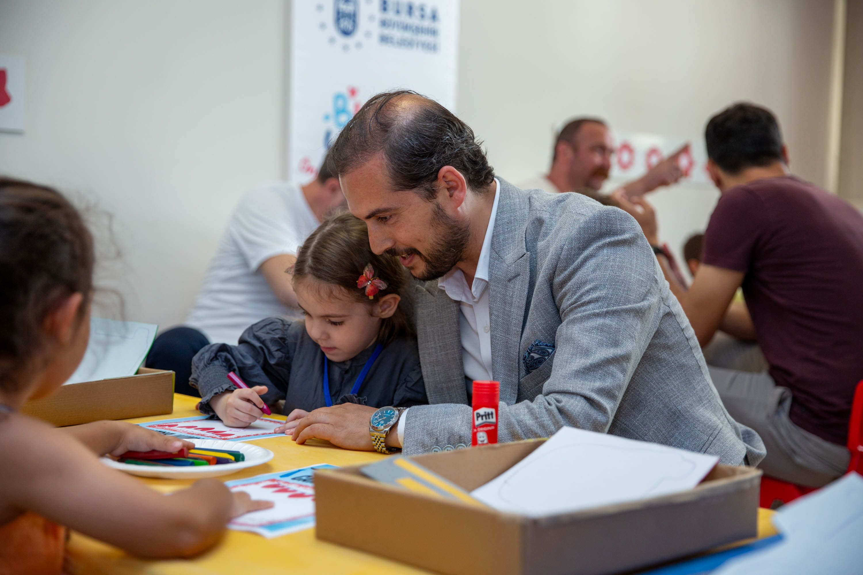 Bursa Büyükşehir Belediyesi’nin ‘Önce çocuklar gülümseyecek’ teması ile hayata geçirdiği ‘Bursa Yuvam Çocuk Eğitim Merkezleri’nde eğitim gören 4-6 yaş aralığındaki çocuklar, Babalar Günü dolasıyla düzenlenen etkinlikte unutamayacakları bir gün geçirdi. Babalarıyla birlikte çerçeve tasarlayarak resim çizen çocuklar, kendi yaptıkları çalışmaları babalarına hediye etti. Çocuklarıyla birlikte keyifli bir gün geçiren babalar da anlamlı etkinlik için Bursa Büyükşehir Belediyesi’ne teşekkür etti.