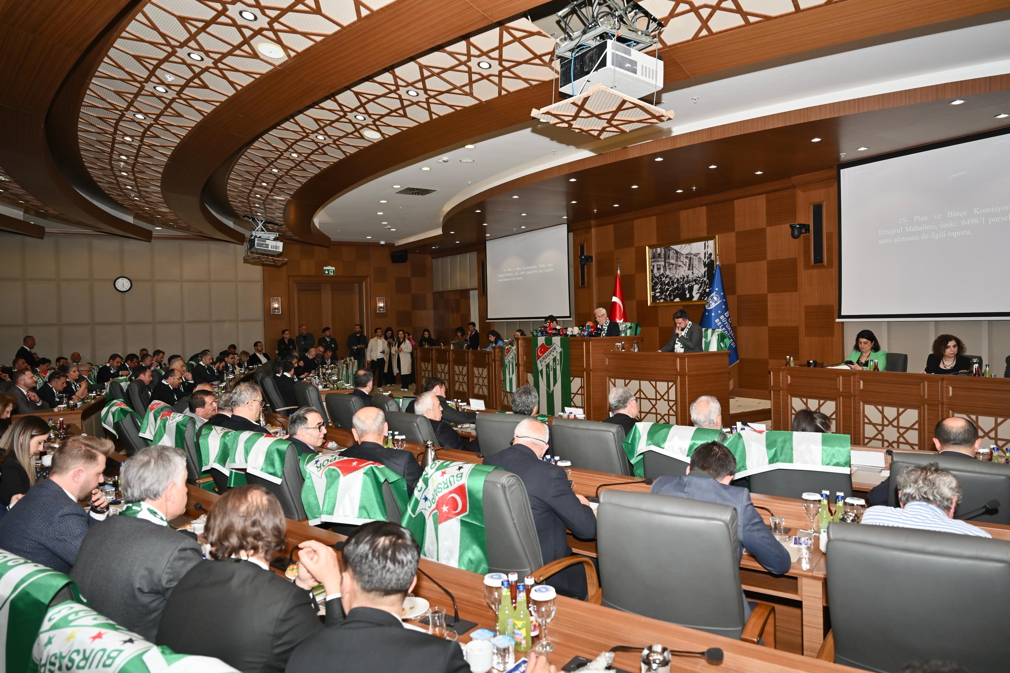 Bursa Büyükşehir Belediye Meclisi’nin Nisan ayı ikinci toplantısı Başkan Mustafa Bozbey’in başkanlığında yapıldı. Büyükşehir Belediyesi Meclis Toplantı Salonu, Şampiyon Bursaspor bayrakları ve atkılarıyla donatıldı. Gündem maddelerinin ve komisyonlardan gelen evrakların görüşüldüğü toplantıda, Büyükşehir Belediyesi Genel Sekreteri Doç. Dr. Ergül Halisçelik tarafından Strateji Geliştirme Dairesi Başkanlığı’nın hazırladığı 2024 Yılı Faaliyet Raporu hakkında 4 ana başlıkta sunum gerçekleştirildi.