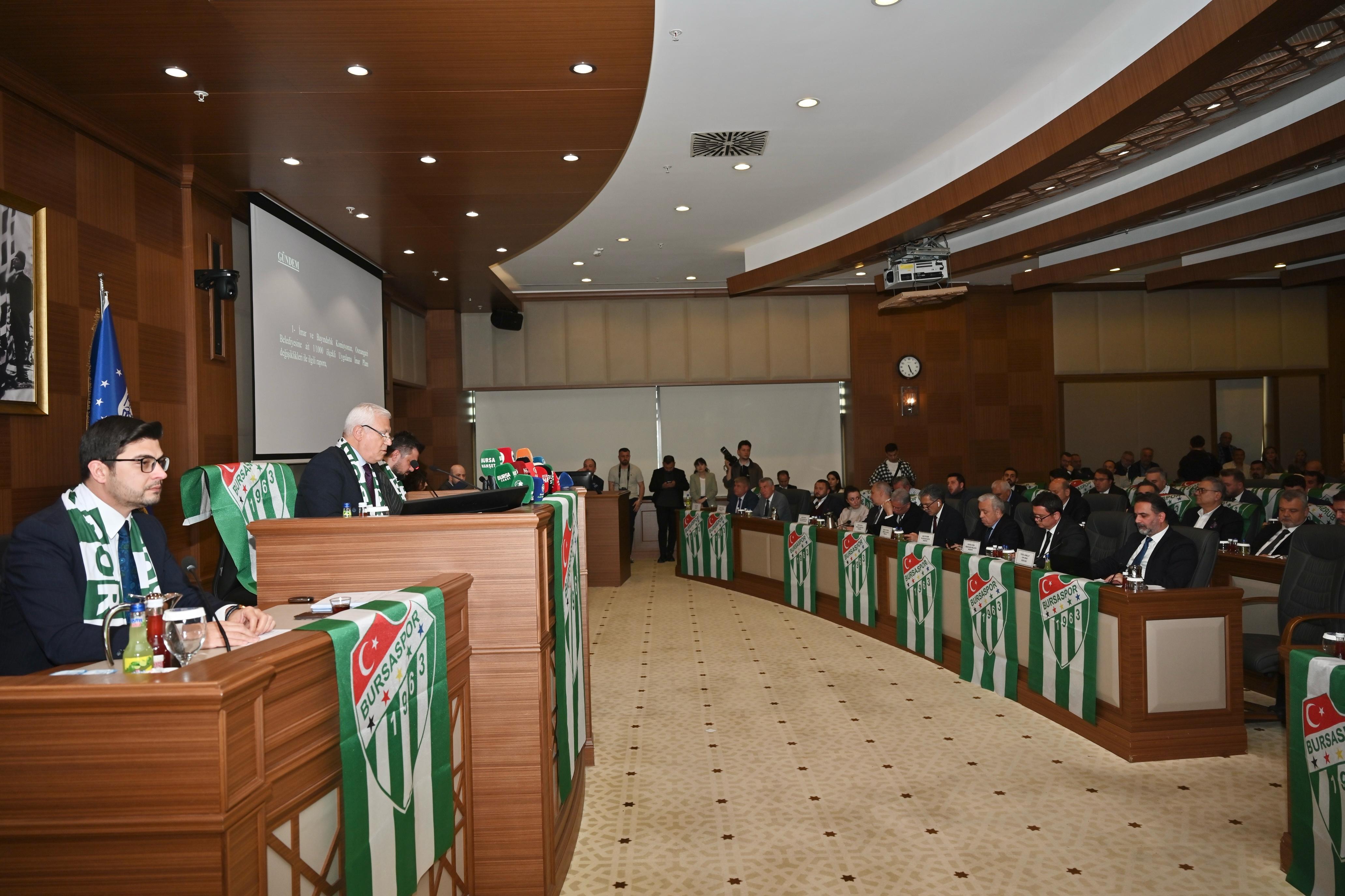 Konuşmasına şampiyon olan Bursaspor’u kutlayarak başlayan Başkan Mustafa Bozbey, Yönetim Kurulu Başkanı Enes Çelik’i, yönetimi, sporcuları, antrenörleri ve taraftarları emeklerinden dolayı tebrik etti. Bursa’da birlik ve beraberliğin ne demek olduğunu herkese gösterdiklerini belirten Başkan Bozbey, “Siyasetçileriyle, kent yöneticileriyle, belediye başkanlarıyla, kent idarecileriyle, sivil toplum kuruluşlarıyla bir araya geldiğimizde Bursaspor’un ve Bursa’nın ne kadar güçlü bir kent olduğu ortaya çıkmıştır. Bu başarı Bursalıların başarısıdır. Bu başarı hepimizin başarısıdır. Bu başarı ve şampiyonluk Bursa’ya gönül vermiş herkesin başarısıdır. Bu başarıların devamını diliyoruz. Büyükşehir Belediye Meclisi olarak Bursaspor’un maddi ve manevi yanındayız. İnşallah kısa süre içerisinde Süper Lig’e çıkması, Avrupa’da da kentimizi temsil edebilecek konuma gelmesi en büyük arzumuzdur. Bu da gerçekleşecektir” diye konuştu.