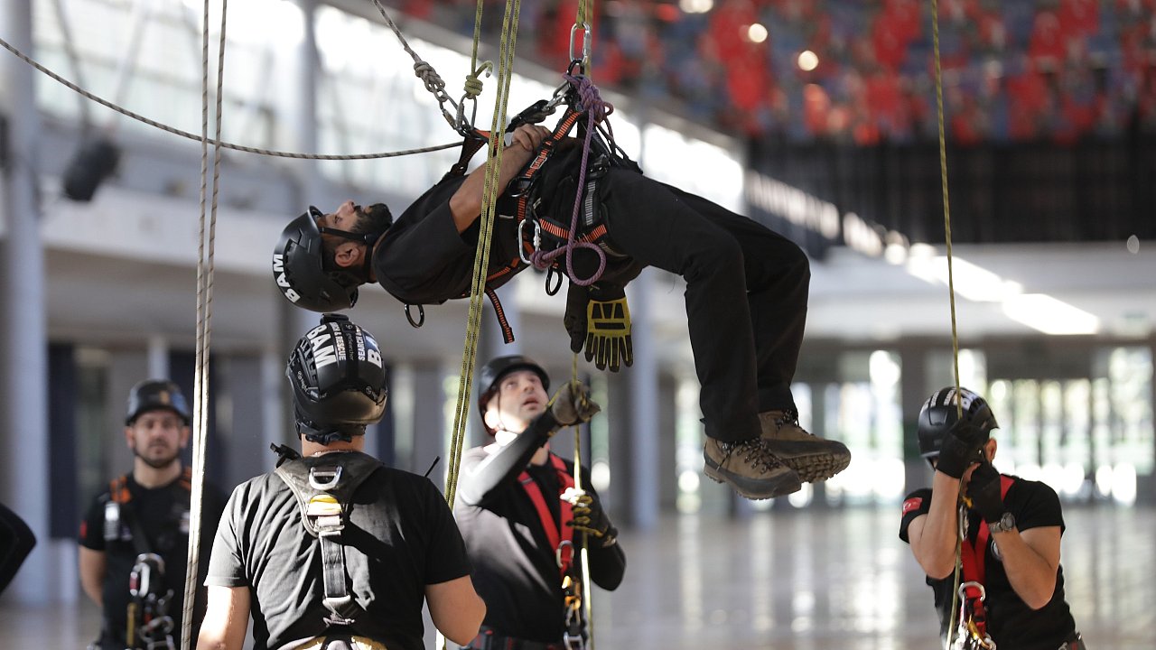 Bursa Büyükşehir Belediyesi, afetlere dirençli kent vizyonu doğrultusunda, BAM başta olmak üzere tüm ilgili birimlerin eğitim ve hazırlık faaliyetlerini aralıksız sürdürmeye devam ediyor. Merinos Yerleşkesi Fuaye Alanı’nda ‘İple Kurtarma Sistemleri ve Arama-Kurtarma eğitimi’ alan ekipler, uzman eğitmenler eşliğinde tavana asılı halatlara güvenlik ekipmanlarını kullanarak tırmandı. Yüksekten erişim, dar alanlara giriş, dikey kurtarma ve zorlu koşullarda güvenli müdahale kabiliyetlerinin geliştirilmesinin amaçlandığı eğitimde, teorik ve pratik bilgiler verildi. Eğitimde, personelin kişisel güvenliği, ekipman kullanımı, düğüm teknikleri, ip sistemleri ve koordineli kurtarma senaryoları uygulandı.