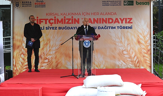Bursa Büyükşehir Belediyesi, kırsal kalkınma hedefleri doğrultusunda Karacabey, Yenişehir, Harmancık ve Keles ilçelerindeki üreticilere yüzde 75’i hibeli siyez buğdayı tohumu dağıttı. Çiftçilerin son yıllarda yaşadığı sorunları bilen bir kent yöneticisi olduğunu söyleyen Başkan Mustafa Bozbey, “Bizler sizin yanındayız, siz yeter ki üretin” dedi.
