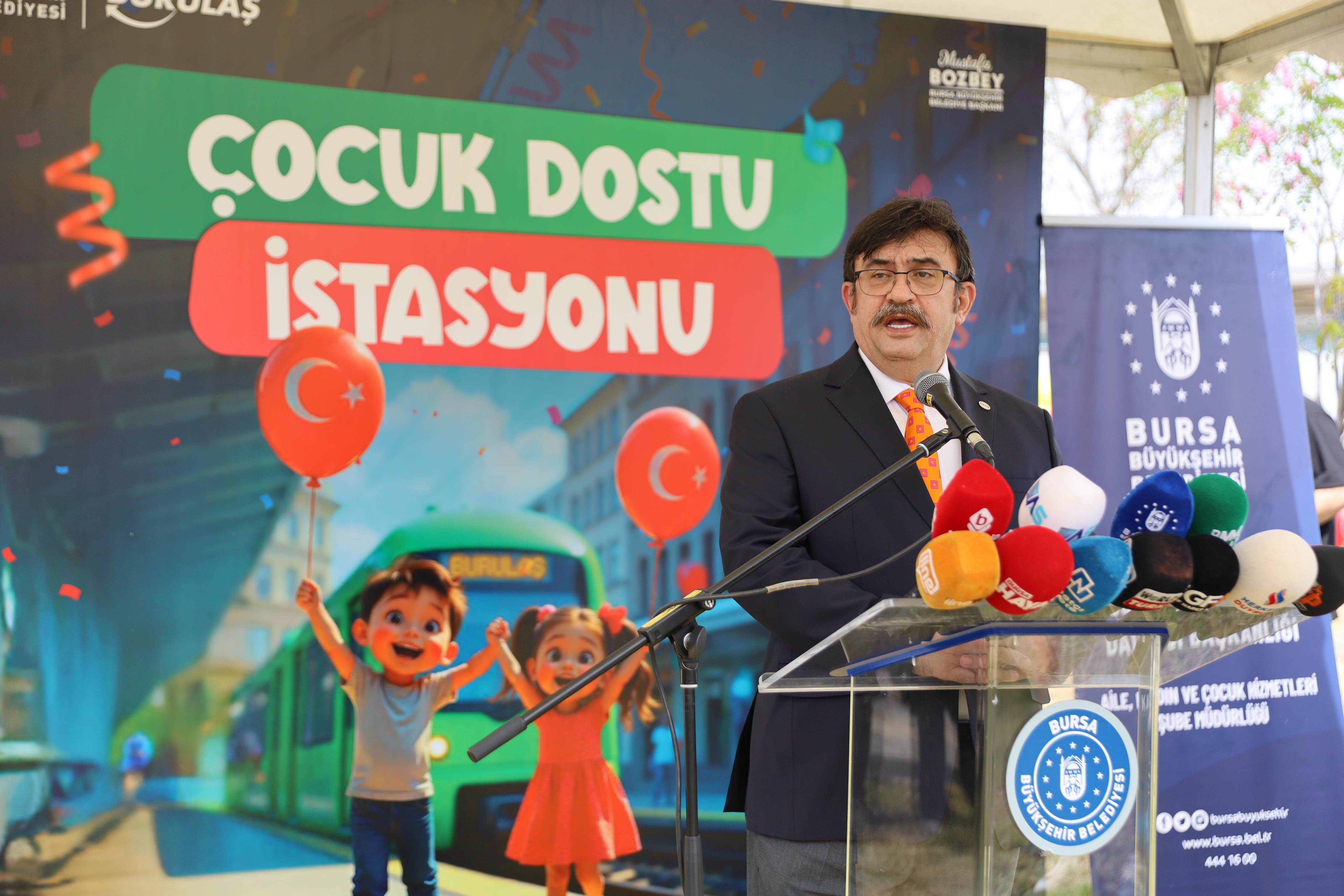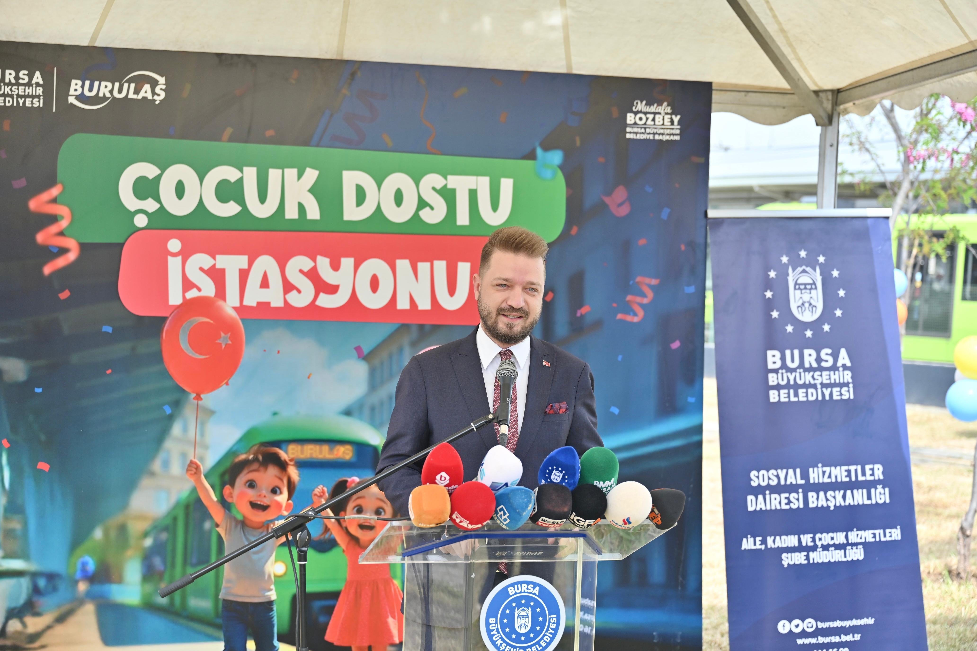 Bayraklarla ve balonlarla süslenen ‘Çocuk Dostu Metro İstasyonu’nun açılış törenine, Bursa Büyükşehir Belediyesi Başkanvekili Yalçın Işıkyıldız, Büyükşehir Belediyesi Genel Sekreter Yardımcısı Mehmet Yıldız, BURULAŞ Genel Müdürü Fahrettin Beşli, Büyükşehir Belediyesi yöneticileri, ilçe belediye yöneticileri, muhtarlar, çocuklar ve aileleri katıldı.
