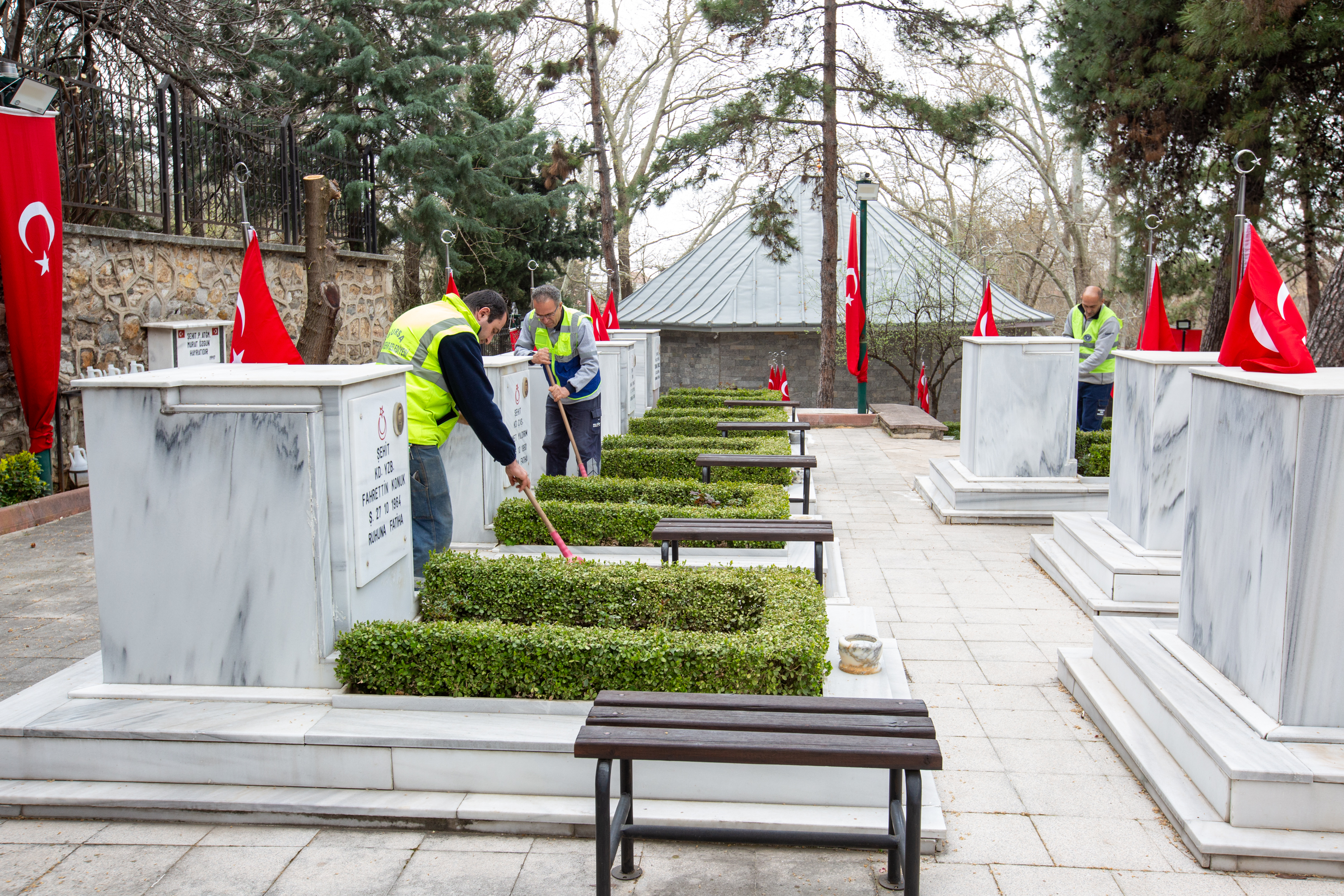 BURSA – Bursa Büyükşehir Belediyesi, 18 Mart Çanakkale Zaferi ve Şehitleri Anma Günü’nde vatandaşların ziyaretlerini daha rahat ve huzurlu bir şekilde yapabilmeleri için Pınarbaşı Şehitliği başta olmak üzere tüm şehitliklerde bakım, onarım ve temizlik çalışmaları yaptı.