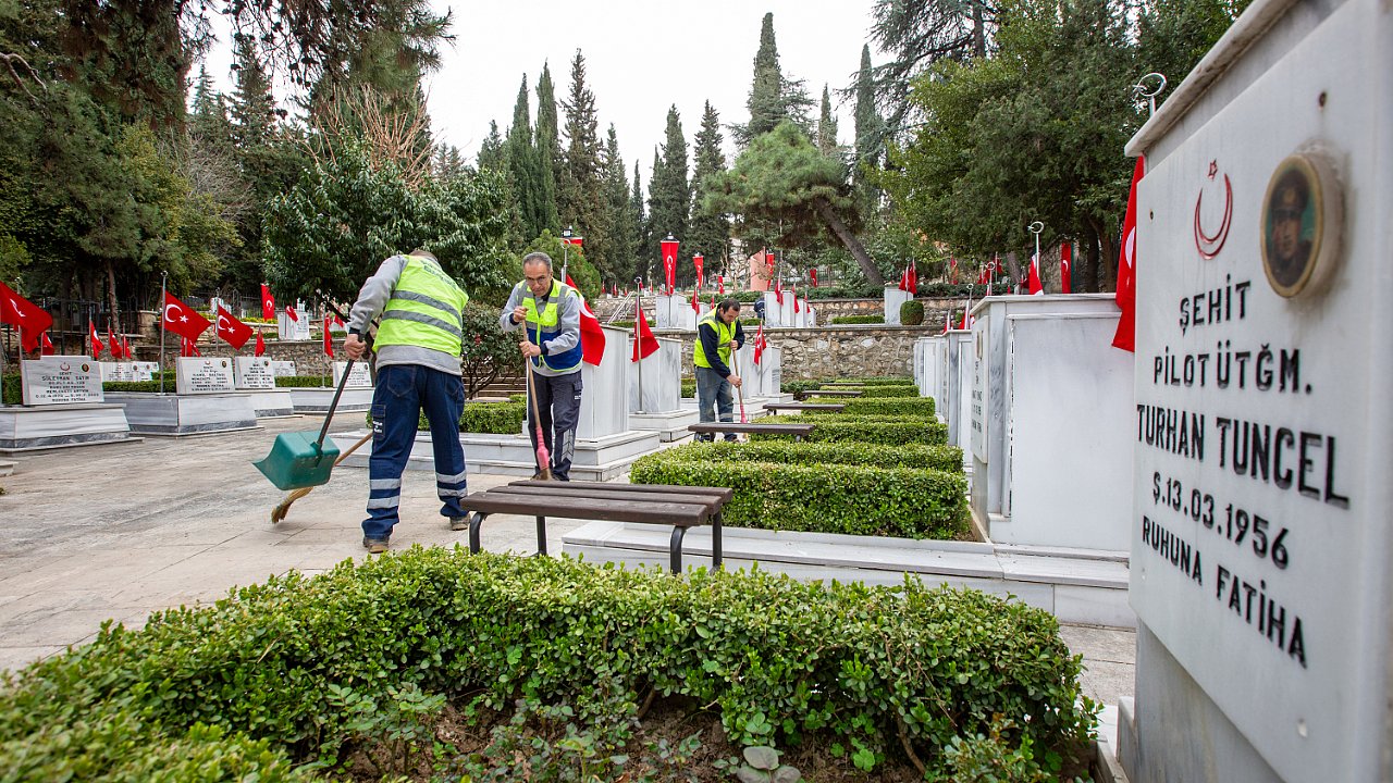 Büyükşehir'den şehitliklerde titiz çalışma