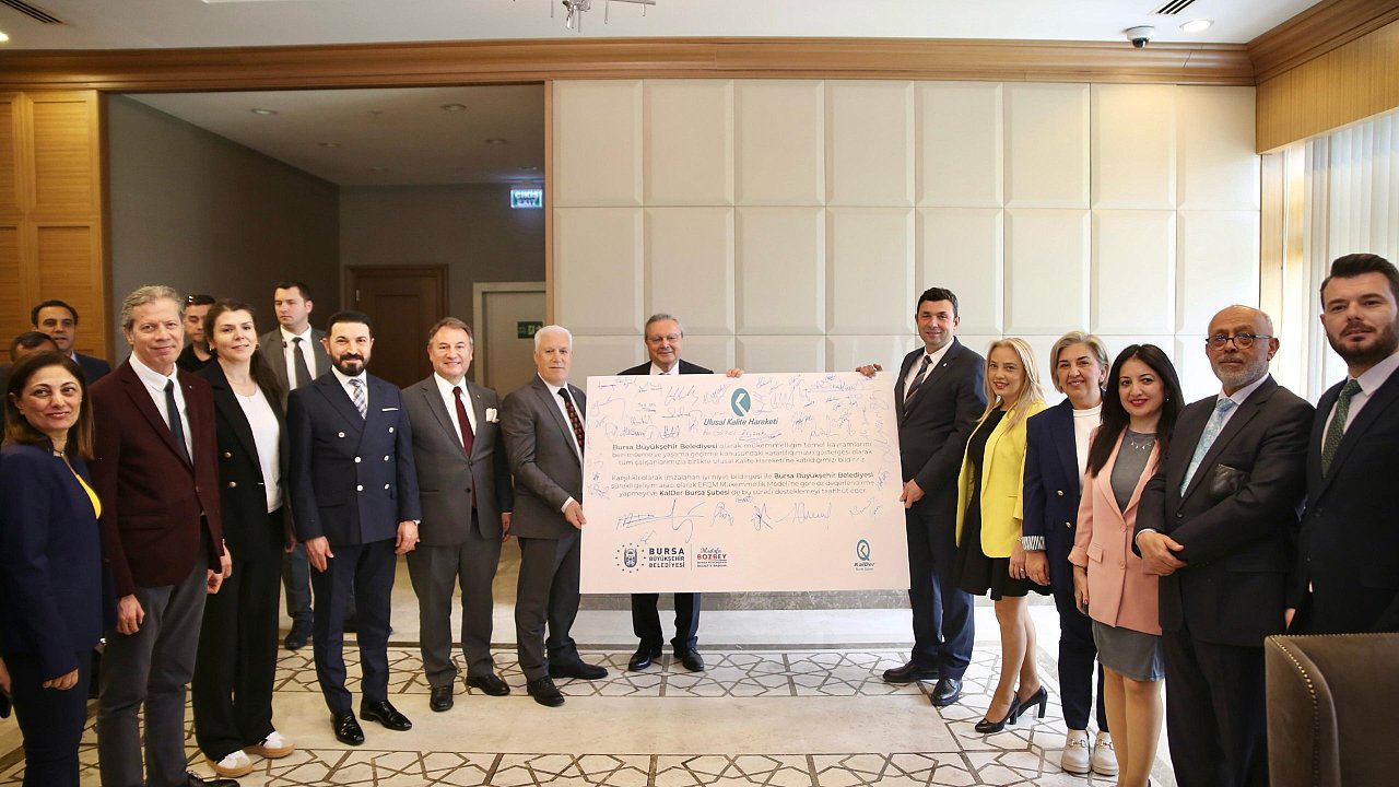 Kurumların uzun vadeli başarısını destekleyen stratejik bir yönetim sistemi olan EFQM modelini, Bursa Büyükşehir Belediyesi’nin benimsediğini ve yaşama geçireceğini simgeleyen Ulusal Kalite Hareketi İyi Niyet Bildirgesi, Bursa Büyükşehir Belediye Başkanı Mustafa Bozbey ve KalDer Bursa Şubesi Yönetim Kurulu Başkanı Serkan Ürkmez arasında imzalandı.