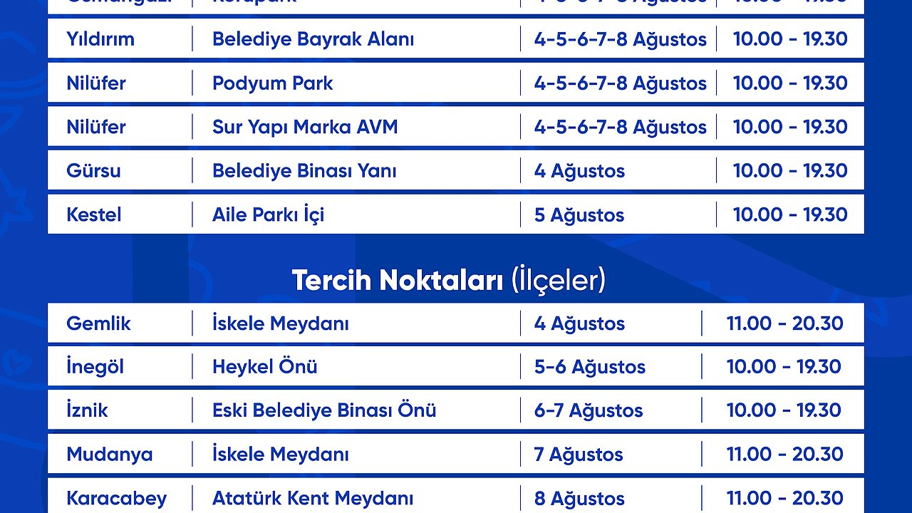 İlçe tercih noktaları