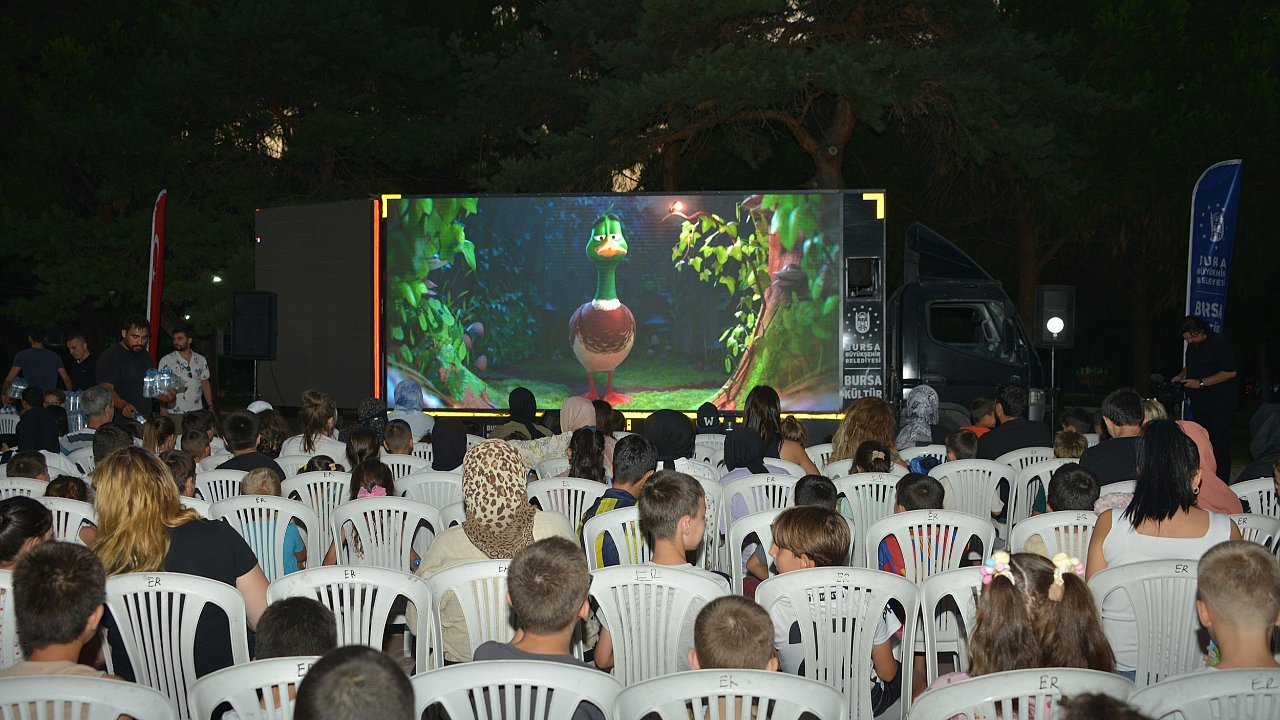 Merinos Park’ındaki etkinlik öncesinde dağıtılan patlamış mısır ve içecekleri afiyetle tüketen çocuklar, ‘Ördeklerin Göçü’ adlı çizgi filmi büyük bir keyifle izledi. Özel gereksinimli bireylerin de katıldığı etkinlikte, 7’en 70’e herkes eğlenceli bir akşam geçirdi. Açık havada çizgi film izleyerek çok mutlu olduklarını dile getiren çocuklar, Başkan Mustafa Bozbey’e ve Büyükşehir Belediyesi’ne teşekkür etti.