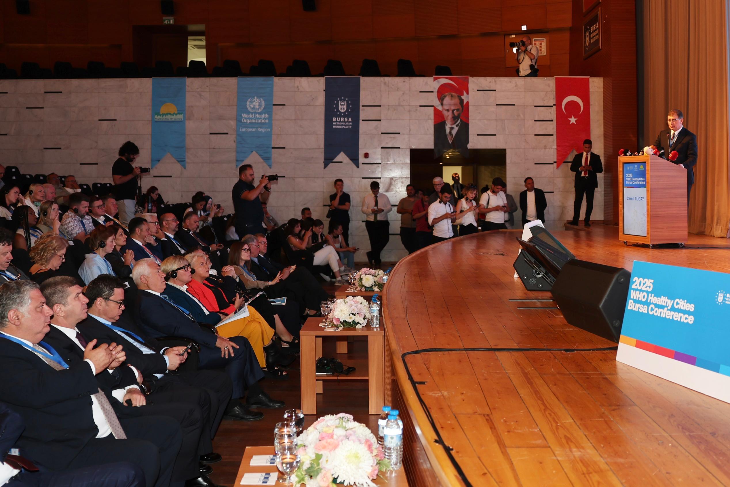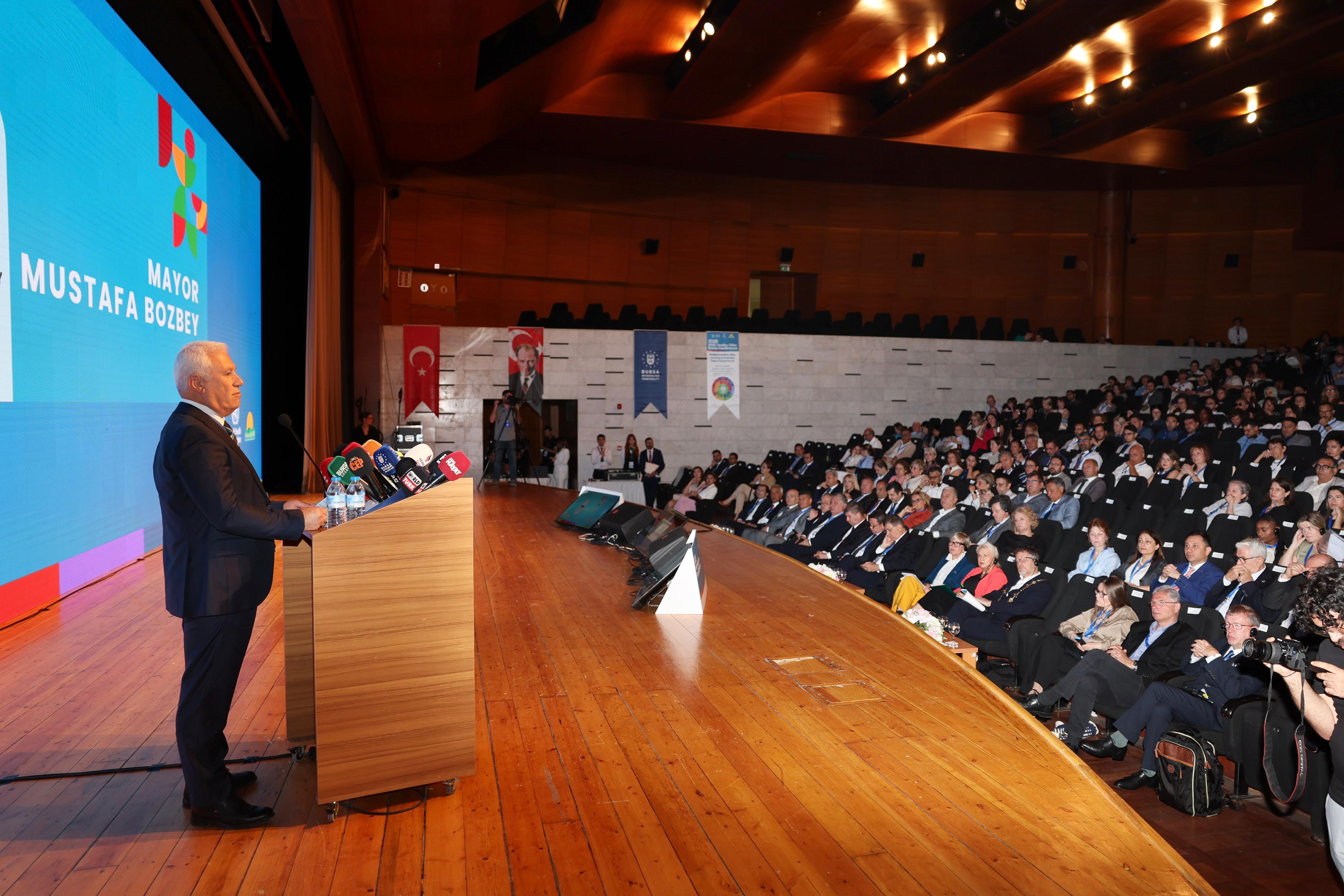 Pandemilerin, savaşların ve derinleşen iklim krizinin dünyayı kaçınılmaz bir dönüşüme sürüklediğini belirten Başkan Bozbey, kent yöneticilerinin bu değişimi en doğru şekilde yönetmesi ve gelecek kuşaklara çevresel etkilerden uzaklaşmış bir dünya bırakması gerektiğini dile getirdi. Dirençli kentler inşa etmenin artık çağın zorunluluğu olduğunu anlatan Başkan Bozbey, “Sağlıklı bir gelecek için riskleri önceden görebilen ve bu riskleri yönetebilen kentler olmak zorundayız. Bu toplantının sonunda hep birlikte önemli bir taahhütte de bulunacağız. Konferansın kapanışında imzalanacak olan ‘Bursa Taahhüdü’, geleceğimiz adına ortaya koyduğumuz ortak iradenin bir belgesi olacaktır. Bu taahhüt; eşitlikten taviz vermeyen, barışı önceleyen, gezegenimizi koruyan, kapsayıcı ve dirençli bir kent anlayışının yol haritasıdır. Bu vizyonun tam merkezinde insan vardır. Ayrıca toplantı boyunca oluşan karbon salımını telafi etmek amacıyla 1200 fidanı toprakla buluşturacağız. İnanıyorum ki burada kurulacak her temas, kurulacak her iş birliği, ortak geleceğimize ışık tutacaktır” dedi.Bundan sonra Dünya Sağlık Örgütü ile iş birliğini güçlendirmeye; bölgesel ve küresel ölçekte iyi uygulamaları yaygınlaştırmaya, birlikte iyileştirmeye ve birlikte büyütmeye kararlılıkla devam edeceklerini söyleyen Başkan Bozbey, DSÖ’ye, temsilcilere, kurumlara ve toplantının düzenlenmesinde emeği geçenlere teşekkür etti.