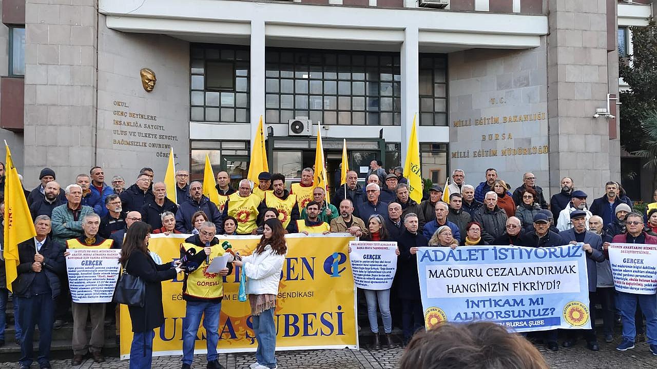 Eğitim Sen; İNTİKAM MI ALIYORSUNUZ?Eğitim Sen Bursa Şubesi üyeleri Bursa Milli Eğitim Müdürlüğü önünde bir süre önce yaşanan bir olayı kamuoyuna yaptıkları açıklamayla dile getirdi. Bursa Şube Başkanı Derviş Erdem’in okuduğu bildiride; “Mahmut Celalettin Ökten İmam Hatip Ortaokulunda bir yılı aşkın bir süre baskı ve mobbinge maruz kalan müdür yardımcısı Doğa KAYCI en sonunda kapısı kırılarak, eşyaları dışarı çıkarılmıştı. İlgili okul müdürü hakkında suç durusunda bulunduk, ancak yapılan soruşturma inceleme sonucunda, odasının kapısı kırılarak şahsi ve resmi eşyaları çıkarılan müdür yardımcısı arkadaşımıza 1/30 oranında maaştan kesme cezası verilmiş, yetinilmeyip müdür yardımcısı olan arkadaşımız Gürsu ilçesine öğretmen olarak görevlendirilmiştir. Kendisine Tebliğ Edilen Cezayı Sizlerle Paylaşayım Hakkınızda Eğitim Müfettişleri tarafından düzenlenen 06.11.2024 tarih ve 663.07/48 sayılı soruşturma raporun sonucunda “Okul Müdürü Ergin Kaya Kırbıyık’tan teyit almadan bir başka odaya taşındığınız ve odanın anahtarını yardımcı hizmetliye değiştirttiğiniz, anahtarın bir yedeğini okul idaresine vermediğiniz, okul müdürüne de odaya taşındığınızı söyleyerek bilgilendirmediğiniz, odanın bir başka yere taşınması ile ilgili görüşmek için 10 Eylül 2024 tarihinde okul müdürü Ergin Kaya Kırbıyık tarafından aranılması ve mesaj atılmasına rağmen okulda olduğunuz halde okul müdürünün yanına gitmediğiniz ve görüşmediğiniz, kullanmakta olduğunuz odanın bir başka odaya taşınması için tarafınıza sözlü ve yazılı olarak oda anahtarının istenilmesine rağmen vermediğiniz, 11.09.2024 tarihinde oda kapısının zorla açılmasından hemen önce oda anahtarının tekrar istenmesine rağmen vermediğiniz ve odanın zorla açılması sırasında anahtarı vermek yerine yaşananları telefon ile kaydettiğiniz” iddiaları ile 657 sayılı yasanın 125. maddesinin C bendinin “ ı) Hizmet içinde Devlet memurunun itibar ve güven duygusunu sarsacak nitelikte davranışlarda bulunmak “ hükmüne aykırı davrandığınız isnadı ile 1/30 Oranında Aylıktan Kesme cezası ile tecziyenize karar verilmiştir. 19 Eylül 2024’te yaptığımız basın açıklamasında yaşananları anlatmıştık. Soruşturma incelemeyi yapıp ceza teklif edenlerle, ceza verenler anlamamışlar. Doğa KAYCI’nın yaşadıklarını maddeler halinde sıraladıktan sonra soruşturma sonucu isnat edilenlere cevap verelim. 06 Kasım 2023 tarihinde Mahmut Celalettin Öktem İmam Hatip Ortaokuluna puan üstünlüğüne göre atanan Doğa KAYCI’ya okul müdürü Ergin Kaya Kırbıyık, tarafından mesaj atılarak; “Okulumda uyumlu bir kadro var ve dönem arasında kimsenin gelmesini istemiyordum. Bu yüzden okulumuza haberimiz olmadan yapılan atama bizi şaşırttı. Öncelikle benimle yüz yüze görüşmeden kesinlikle şu an ki okulunuzdan ayrılmayın. Benimle görüşmeden buradaki idari kadroya dahil oldunuz. Bu yüzden size söylemek istediğim şeyler var.” diyerek, daha göreve başlamadan arkadaşımızı istenmeyen kişi olarak kabul etmiştir. Daha iyi koşullarda oda olmasına rağmen, sırf cezalandırmak için penceresi olmayan havasız bir odayı kendi deyimiyle uygun görmüştür. Odasına çağırıp, “Kıyafetine dikkat et, ben takıntılı biriyim, taktım mı çok pis takarım.” diyerek tehdit etmiştir. “Bugün istifa etsen çok memnun olurum.” diyerek her fırsatta yıldırmaya, bezdirmeye çalışmıştır. Bir gün okula sadece 10 dakika geç kalan Doğa KAYCI’yı odasına çağırıp, bugünden sonra danışmaya imza sirküsü bırakacağını, girerken ve çıkarken imzalamasını istediğini, neredeyse azarlarcasına söylemiş, müdür yardımcısı arkadaşımızı itibarsızlaştırmak adına imza sirküsünü danışmadaki görevliye bırakıp, onun takip etmesini istemiştir. Bu uygulamayı yaz tatili döneminde de dört tane müdür yardımcısı ve kendisi varken sadece Doğa KAYCI’ya yapmıştır. Doğa KAYCI, bir yılı aşkın bir süredir müdür yardımcısı olarak okulun personelidir. Kendisinden sonra okula gelen personelin okulun web sayfasında yer almasına rağmen, web sayfasında dahi yer vermeyerek asıl niyetini, (yok sayma halini) açıkça belli etmiştir. Sözlü taleplerine karşılık bulamayan Doğa KAYCI, yazılı olarak daha uygun koşullarda oda olduğunu ve halen bulunduğu yerde sürekli hasta olduğunu belirtince, kendisine okul öncesi öğrencilerinin bulunduğu katta ancak içinde tuvalet olan odayı yine kendi deyimiyle uygun gören okul müdürü, 25 metrekarelik odanın içindeki tuvaleti diğer öğretmenlerin kullanmasını da uygun görmüştür. Odasındaki tuvaleti başka öğretmenlere kullandırmayacağını söyleyen ve durumdan ilçe milli eğitim müdürünü de haberdar eden Doğa KAYCI’ya yeniden giriş katta bu sefer de revir olarak kullanılan odayı uygun gören okul müdürü, oranın uygun koşullara getirilmemesi halinde taşınmayacağını söyleyen Doğa KAYCI’nın halen müdür yardımcısı olarak tahsis edilmiş odasının kapısını yardımcı personelle birlikte kırarak özel eşyalar da dahil olmak üzere odayı boşaltmıştır. Şimdi Gelelim Suçlamalara: Okul Müdürü Ergin Kaya Kırbıyık’tan teyit almadan bir başka odaya taşındığınız; Odanın değiştirilmesine dair sözlü taleplerinin karşılık bulmadığını gören Doğa KAYCI, odasının değiştirilmesi için dilekçe ile başvuruda bulunmuştur. Dilekçesinin evrak kayıt numarasını, ilgili personel Hakim Ayhan’dan istediğinde, “Gerek yok, sizin için yukarıdan oda bakmamı söyledi müdür bey” demiştir. Bir süre sonra da “Okul öncesi birimindeki içerisinde WC bulunan ve öğretmenlerin de kullandığı odayı müdür beyin uy