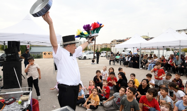 Bağlarbaşı Meydanı’nda düzenlenen etkinliklere katılan çocuklar, sihirbaz gösterisinin