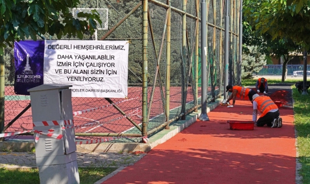 İzmir Büyükşehir Belediyesi vatandaşların parklardan konforlu bir şekilde ve güvenle faydalanmaları için bakım, onarım çalışmalarına hız kattı. İzmir Büyükşehir Belediyesi park ve Bahçeler Dairesi Başkanlığı tarafından yürütülen çalışmalar kapsamında, çocuk oyun alanlarında ve koşu yollarında kauçuk zemin, spor alanlarında ise akrilik zeminlerde yenileme çalışması başlatıldı. Vatandaşlardan ve muhtarlardan gelen talepler doğrultusunda 11 ilçede toplam 30 parkta zemin yenileme çalışması tamamlandı. Yenileme ve onarımlar tüm hızıyla devam edecek.
