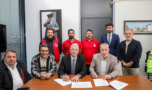 Mudanya Belediyesi ile DİSK’e bağlı Genel - İş Sendikası arasında altı aydır devam eden ve MUD – BEL Personel A.Ş. bünyesindeki 464 personeli kapsayan toplu iş sözleşmesi görüşmelerinde mutlu sona ulaşıldı. Belirlenen zam oranı sevinçle karşılanırken, belediye personeli davul zurna ile sözleşmeyi kutladı.Yıldıztepe Yerleşkesi’nde gerçekleşen imza törenine Mudanya Belediye Başkanı Deniz Dalgıç, Belediye Meclis Üyeleri, Genel – İş Sendikası Bursa 1 Nolu Şube Başkanı Ahmet Aslan, Şube Sekreteri Hasan Özdemir, Toplu Sözleşme Daire Müdürü Engin Sezgin ile sendika temsilcileri katıldı. Görüşmelerin geldiği son noktayı anlatan, sendika temsileri ve personeline teşekkür eden Mudanya Belediye Başkanı Deniz Dalgıç, “Ben sizlerle beraber masanın aynı tarafındayım. Mudanya için daha iyi işler yapmak için çalışıyoruz” dedi.