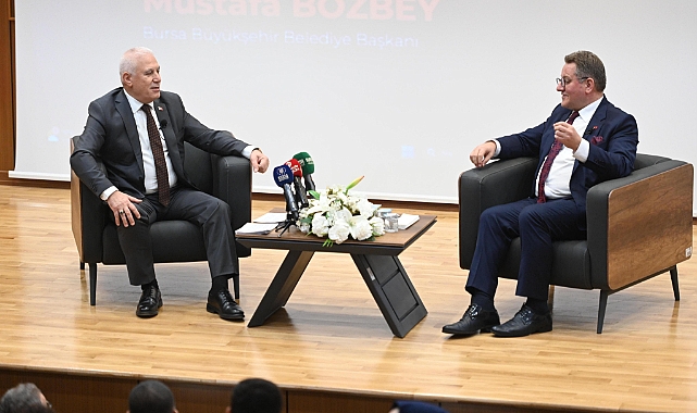 Bursa’yı yeniden Yeşil Bursa yapmak ve herkesin huzur içerisinde yaşamasını sağlamak adına çalışmalar yürüttüklerini belirten ve öğrencilerden gelen soruları cevaplayan Başkan Bozbey, Bursa için gelecek hedeflerini paylaştı. Her fikir ve eleştiriye açık olduklarını belirten Başkan Bozbey, “Gençlerin fikirleri bizler için çok önemli. Her eleştiriyi farklı bir bakış açısı ve önemli kabul ediyoruz. Bursa’yı yeniden Yeşil Bursa yapmak için her kesimin katılım sağlayacağı bir plan ortaya çıkacak. Bu Bursa’nın Kent Anayasası olacak. Bursa’nın çok önemli jeotermal kaynakları var. Sağlık turizminin oldukça önemli olduğu bu dönemde Bursa’yı dünya genelinde ön plana çıkarmak istiyoruz. Bursa, deprem bölgesi içinde. Önce mevcut yapılarımızı güçlendirmemiz gerekiyor. Kentsel dönüşümden anladığımız yıkıp yerine yenisini yapmak değil. Her türlü yaşam alanının olduğu insanların deprem korkusu olmadan, ihtiyaçlarına ulaşabildiği alanlar ortaya çıkarmak istiyoruz. Şu an kent merkezinde 7 mahallede kentsel dönüşüm çalışmamız devam ediyor. Yine 14 mahallede daha saha çalışması yapıyoruz. Mevcut ulaşım master planında tadilat yapacağız. Öncelikli olarak Çalı’dan Demirtaş’a kadar olan bir raylı sistemi bitirmek istiyoruz. Yaklaşık 100 kilometrelik bir raylı sistem hattıyla birlikte Bursa’nın ulaşım sorunun yüzde 80’inin çözüleceğini düşünüyorum” dedi.