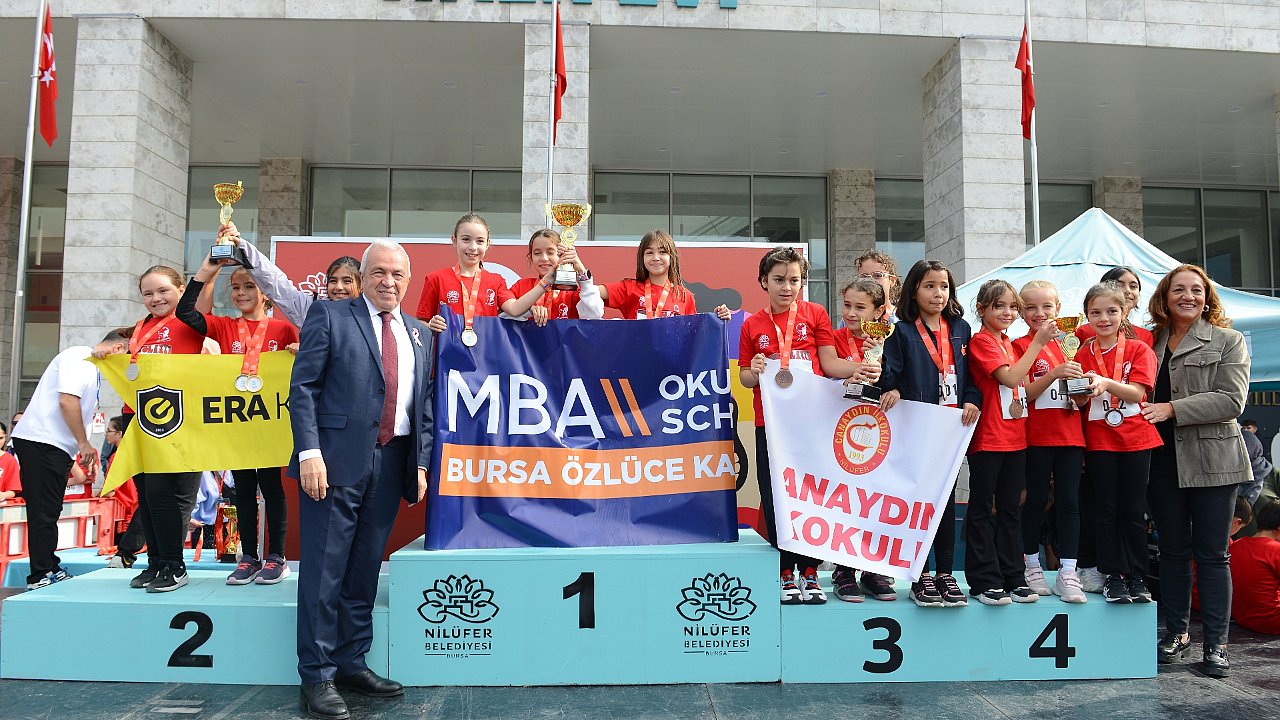 Nilüfer’de binden fazla öğrenci Cumhuriyet için koştuNilüfer Belediyesi’nin Cumhuriyet’in 102. yılı kutlamaları, bu yıl yine büyük bir heyecanla başladı. 55 okuldan bin 609 öğrenci, “Okullar Arası Cumhuriyet Koşusu”nda Cumhuriyet’in değerleri için ter döktü, kardeşlik ve dayanışma içinde koştu.Nilüfer Belediyesi, Nilüfer İlçe Kaymakamlığı ve Nilüfer İlçe Milli Eğitim Müdürlüğü iş birliğiyle geleneksel olarak düzenlenen “Okullar Arası Cumhuriyet Koşusu” büyük bir coşkuya sahne oldu. Etkinlikte 55 okuldan bin 609 sporcu 8 kategoride yarıştı. Yarışmanın başlangıcına Nilüfer Belediye Başkanı Şadi Özdemir, Nilüfer Belediye Başkan Yardımcıları, meclis üyeleri ve Nilüfer Belediyespor Kulübü Başkanı Muharrem Or katıldı. Fatih Sultan Mehmet Bulvarı üzerindeki koşunun başlangıcını Başkan Şadi Özdemir yaptı. Yarış, Nilüfer Belediyesi Halkevi önündeki Cumhuriyet Meydanı’nda sona erdi. Cumhuriyet Meydanı’nda çocuklar çeşitli etkinlik ve oyunlarla eğlendi.ÖNEMLİ OLAN CUMHURİYET HEYECANININ BİR PARÇASI OLMAKYarışların sonunda Cumhuriyet Meydanı’nda ödül töreni yapıldı. Burada konuşan Nilüfer Belediye Başkanı Şadi Özdemir, herkesin Cumhuriyet Bayramı’nı kutlayarak, 29 Ekim’de FSM Bulvarı’ndan başlayacak ‘Cumhuriyet Yürüyüşü’ne davet etti. Yarışmaya katılan tüm çocukları kutlayan Başkan Şadi Özdemir, “Esas olan yarışmaktır. Birinci olmak elbette keyiflidir ama Cumhuriyet Koşusu’na katılmak, bu heyecanın bir parçası olmak her şeyden değerlidir. Sizleri çok seviyoruz, her zaman birlikte olmayı diliyorum” dedi.DERECEYE GİRENLER ÖDÜLLENDİRİLDİDaha sonra ‘Minik Kızlar’, ‘Minik Erkekler’, ‘Küçük Kızlar’, ‘Küçük Erkekler’, ‘Yıldız Kızlar’, ‘Yıldız Erkekler’, ‘Genç Kızlar’ ve ‘Genç Erkekler’ kategorilerinde bireysel ve takım olarak dereceye giren öğrencilere ödülleri takdim edildi. Ayrıca, ‘Başkanlık Kupası’ ödülü de verildi. Başarılı sporculara ödüllerini Nilüfer Belediye Başkanı Şadi Özdemir, Belediye Başkan Yardımcıları Serpil Altun, Bukle Erman ve Okan Şahin, Meclis Üyeleri Demirhan Aslan, Resul Tarman, Salig Güleç, Mehtap Esen, Ekrem Erk, Ali Sezgin ve Berna Hacer Bilici ile Nilüfer Belediyespor Başkanı Muharrem Or takdim etti.