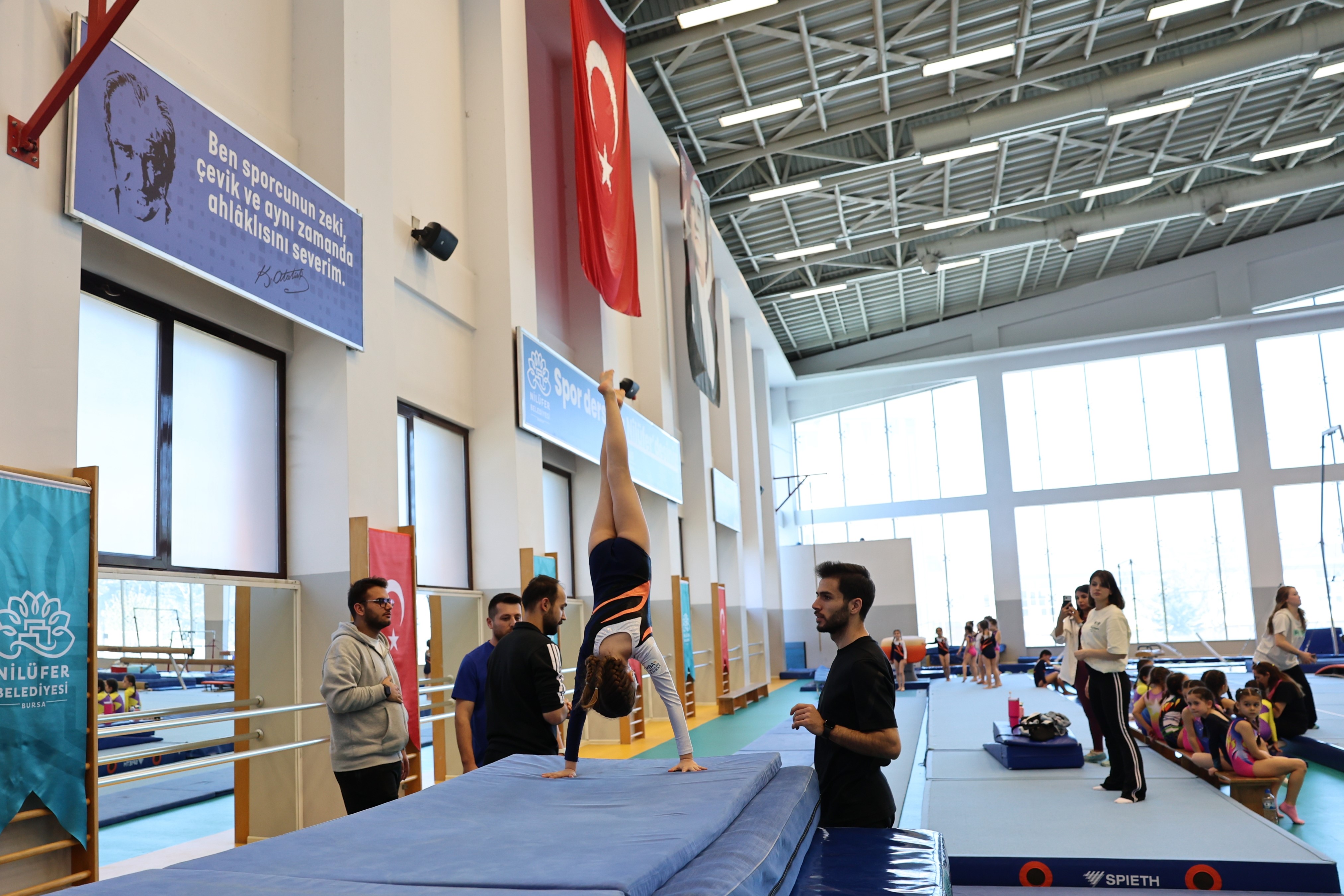 Şenlikler kapsamında Beşevler Şampiyon Melekler Cimnastik Salonu’nda ‘artistik cimnastik’,