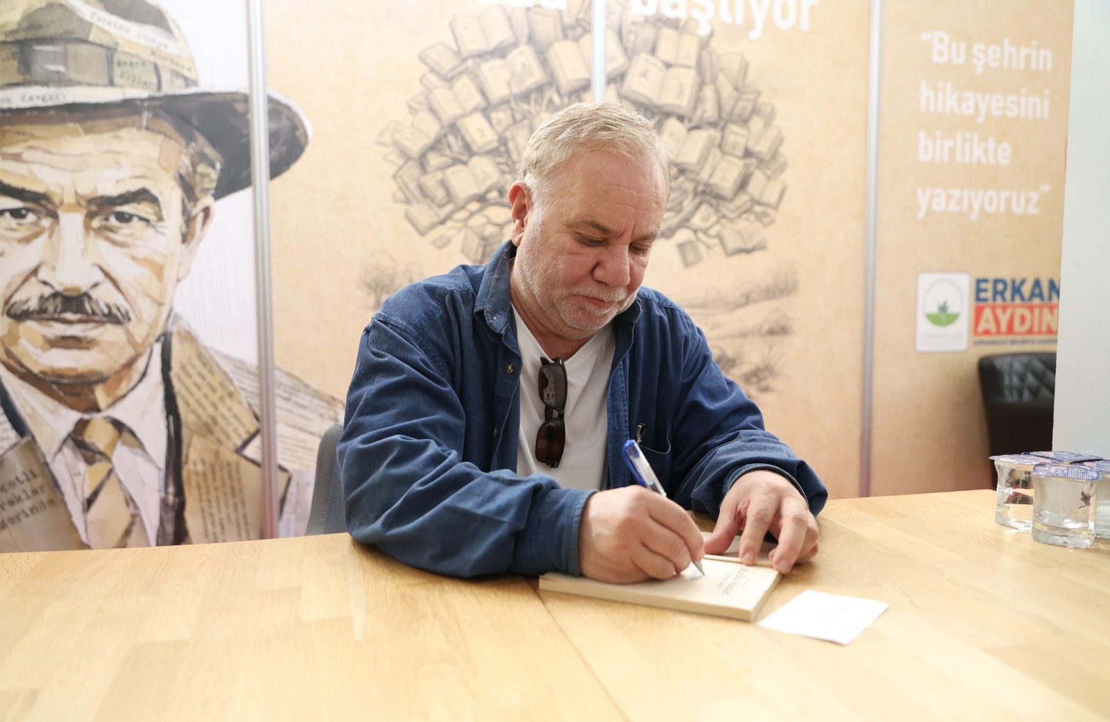Yoğun katılımla gerçekleşen imza gününde Ersöz, okurlarının kitaplarını tek tek imzalarken,