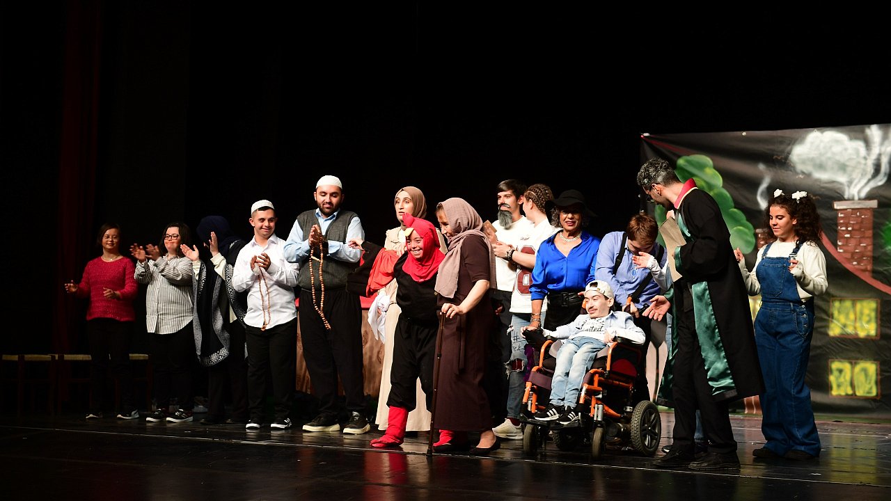 çalışmalarının ardından ‘perde’ diyen oyunda, engelli bireyler sahneye ilk adımlarını attı.