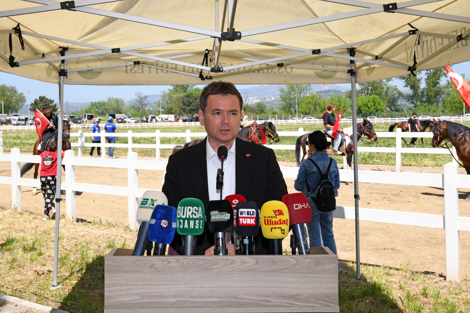 alana giriş yaptı. Yarışlara katılan tüm at sahiplerine ve binicilerine katılımlarından dolayı