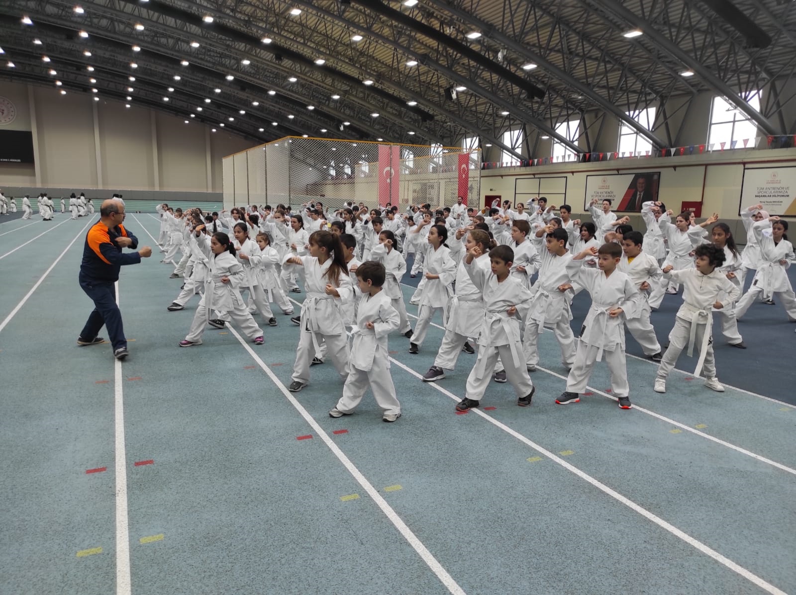 antrenörler tarafından sporculara, karate ile ilgili teknik konular uygulamalı bir şekilde