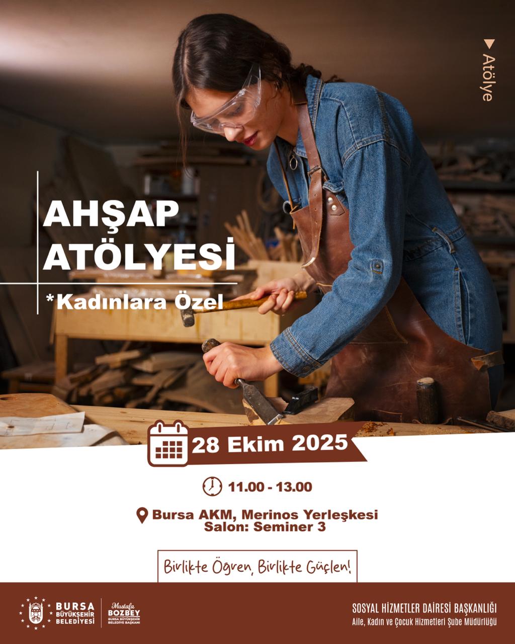 Bursa Büyükşehir Belediyesi Sosyal Hizmetler Dairesi Başkanlığı Aile, Kadın ve Çocuk Hizmetleri Şube Müdürlüğü tarafından 25 Kasım Kadına Yönelik Şiddete Karşı Uluslararası Mücadele Günü kapsamında birçok eğitici atölye programı düzenleniyor.