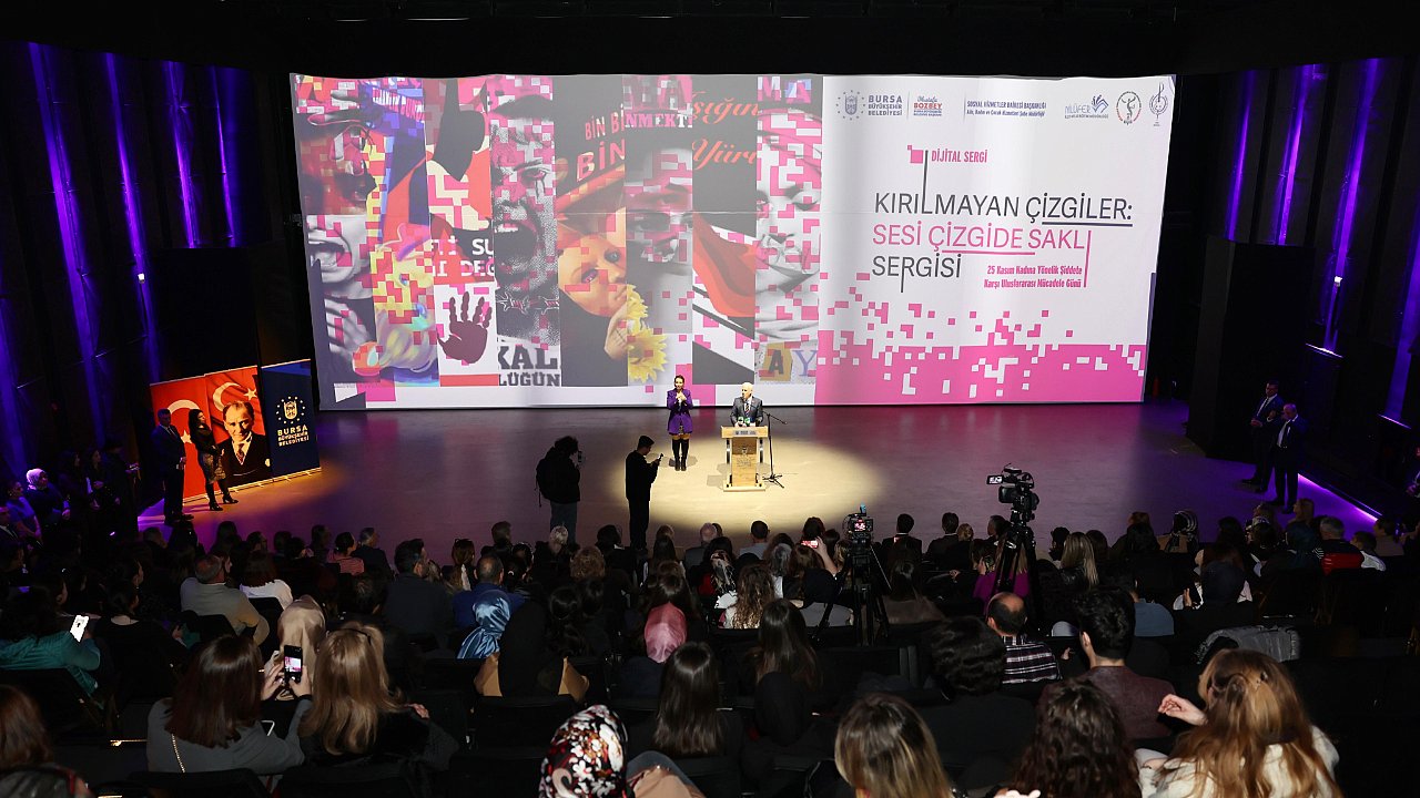 Açılış programında konuşan Büyükşehir Belediye Başkanı Mustafa Bozbey, gençlerin aklından ve hayal gücünden yükselen güçlü farkındalık çağrısını hep birlikte görünür kılmak istediklerini söyledi. Hayata geçirilen dijital serginin dijital alanlarda yaşanan şiddeti, eşitsizlikleri ve görünmeyen yaraları sanatın diliyle ortaya koyduğunu vurgulayan Başkan Mustafa Bozbey, “Sergide yer alan her çizgi, her renk ve her ışık; ‘şiddetsiz bir yaşam mümkündür’ diyen güçlü bir dayanışmanın ifadesidir. Kadına Yönelik Şiddete Karşı Uluslararası Mücadele Günü’nde hayata geçirdiğimiz proje, bu alanda verilen küresel mücadelenin Bursa’daki yansımasıdır. Aynı zamanda Birleşmiş Milletler Kadın Birimi’nin bu yıl belirlediği ‘Tüm kadınlara ve kız çocuklarına yönelik dijital şiddete son verin–Birleşelim’ temasının da önemli bir parçasıdır. Sergi, küresel bir çağrının gençlerimizin üretimiyle yerelde karşılık bulması açısından çok değerlidir” dedi.
