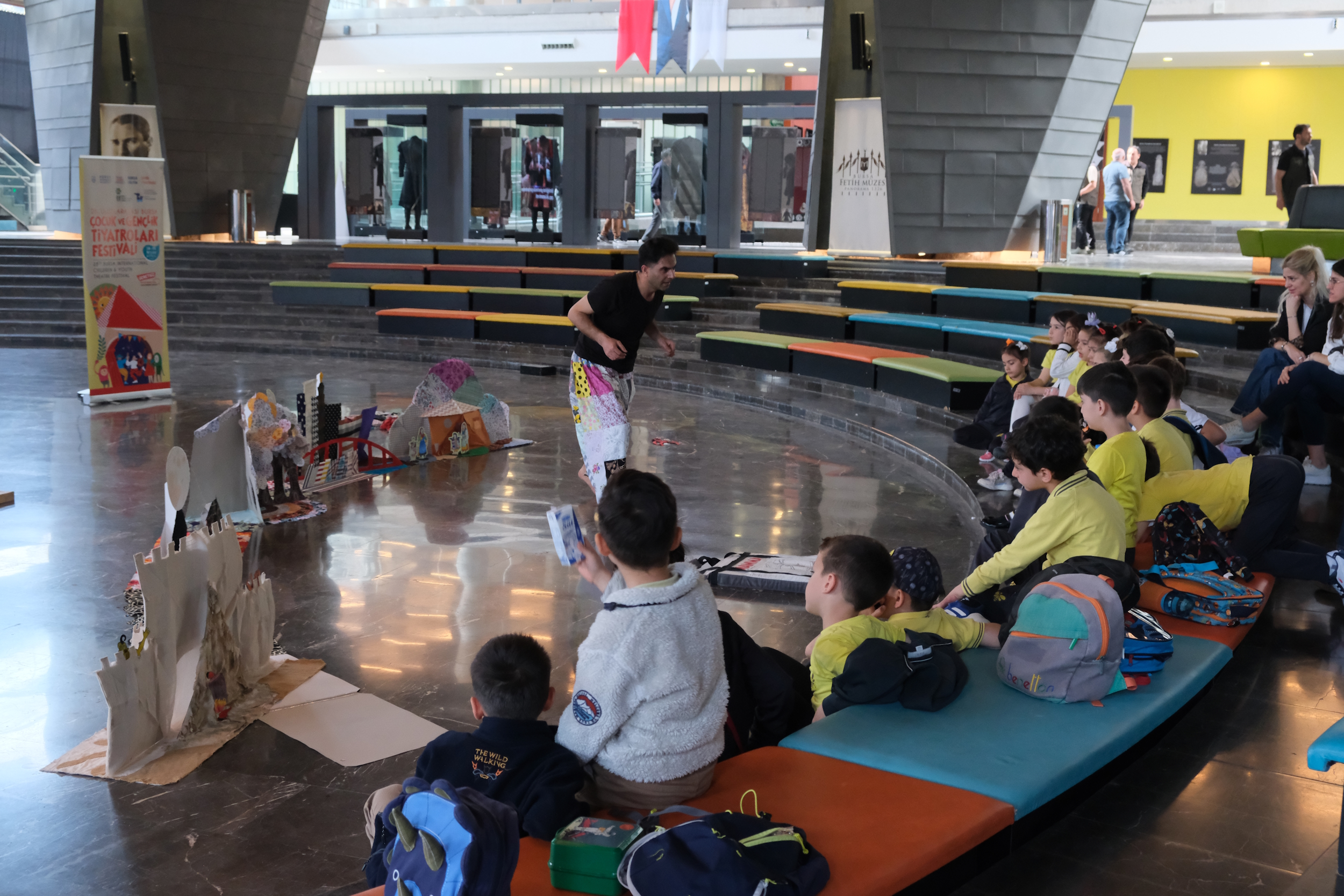 İran’dan festivale katılan Emrahim Shakeri Bağımsız Tiyatrosu’nun ‘Anne’ oyunu da Panorama 1326 Fetih Müzesi’nde minik izleyicilerle buluştu. Annesini kaçıran devlerle küçük kızın hikayesinin işlendiği tek kişilik oyunda, oyuncunun miniklerle iletişimi izleyenlere neşeli anlar yaşattı.